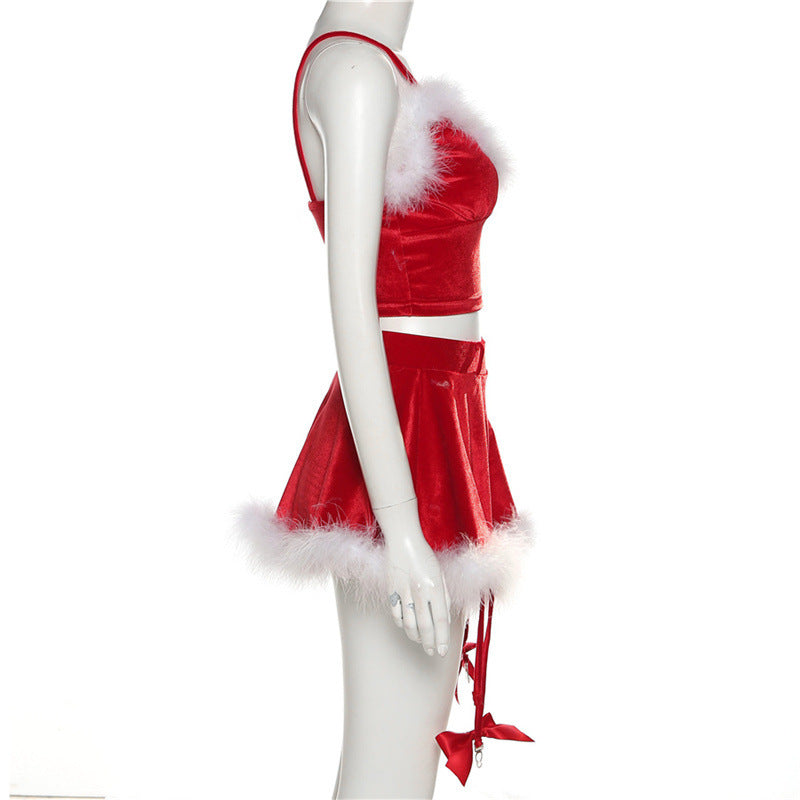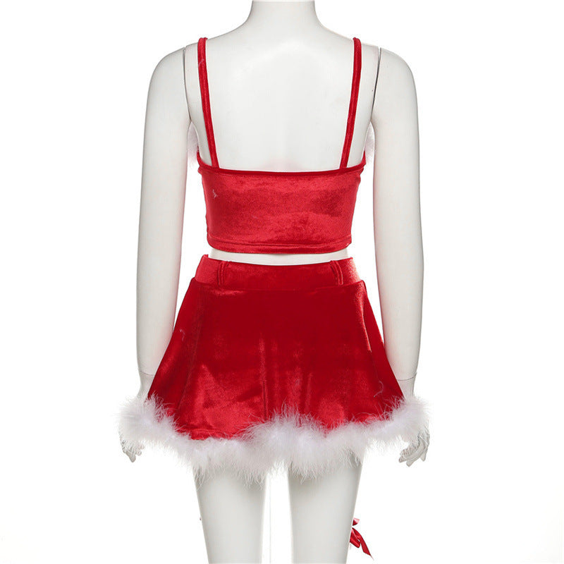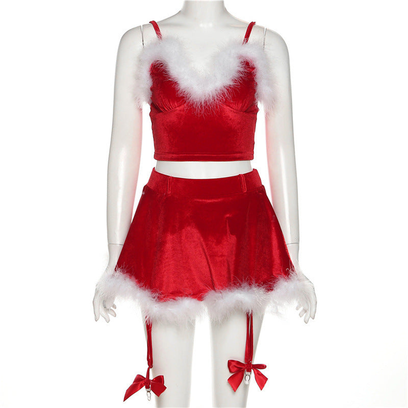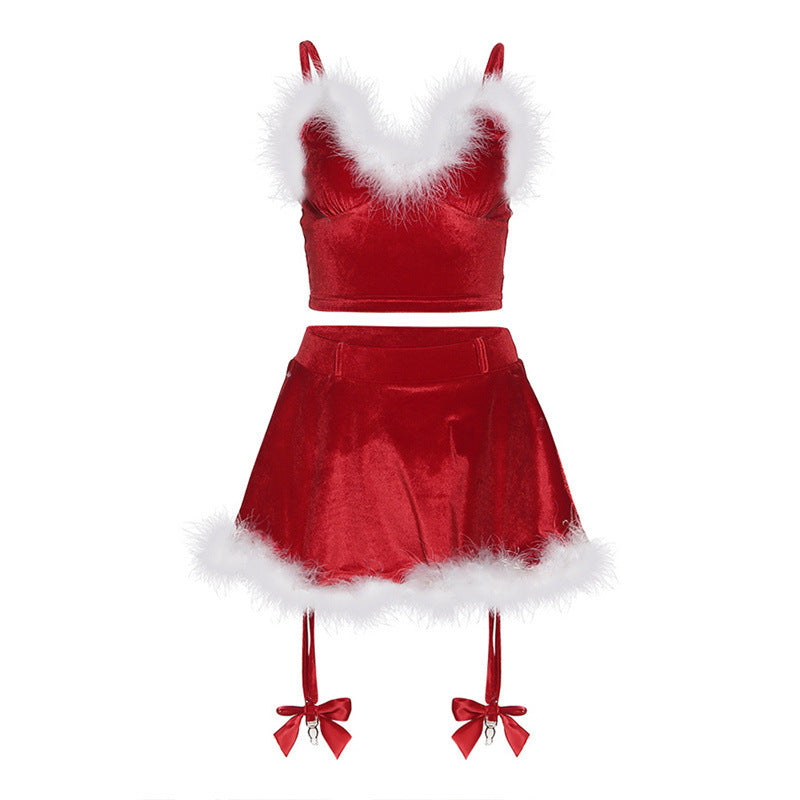 Ladies Sexy Lingerie Women Night Club Party Dress Girl Mini Wrap Skirt Two Piece Set Christmas Clothing