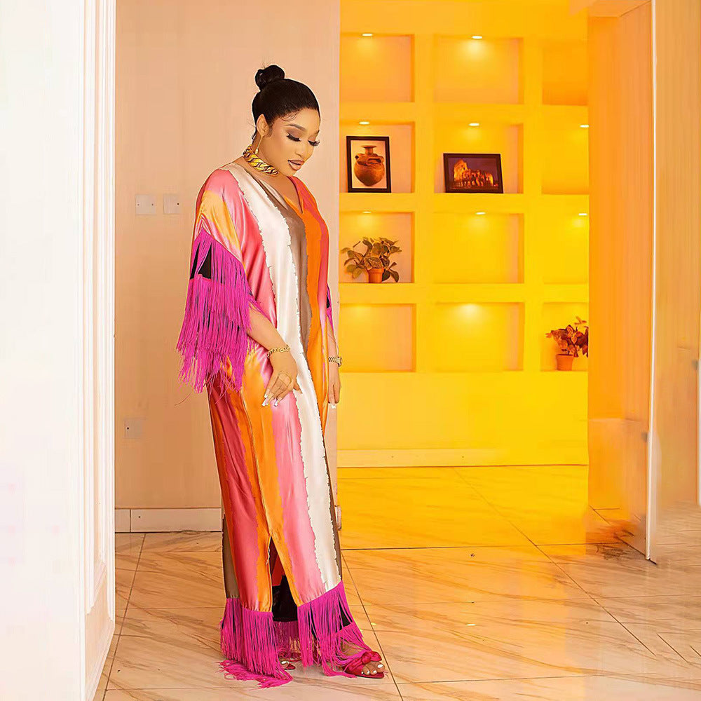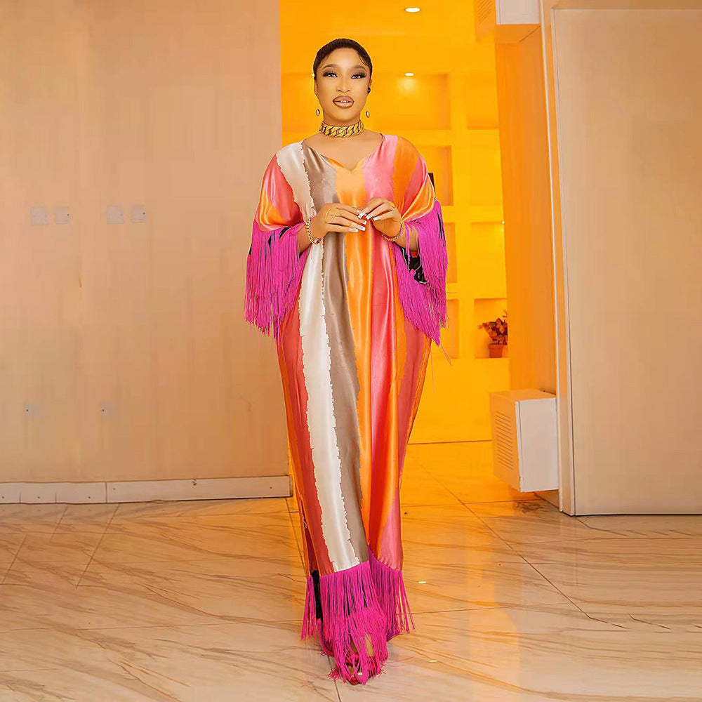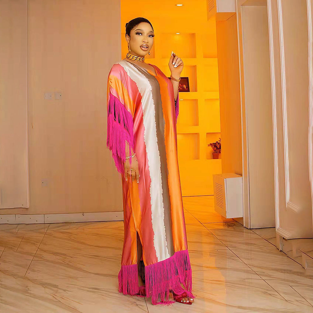 New Ethnic Style Silk Robe Fringed Fashion Digital Printing Dress For Women
