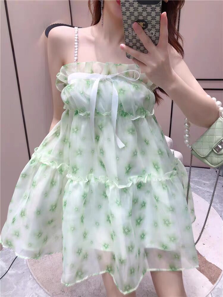 New Sleeveless Beaded Strap Summer Dress Women Print Floral A-Line Kawaii Japanese Sweet Girls Mini Dress Chic Fairy vestidos
