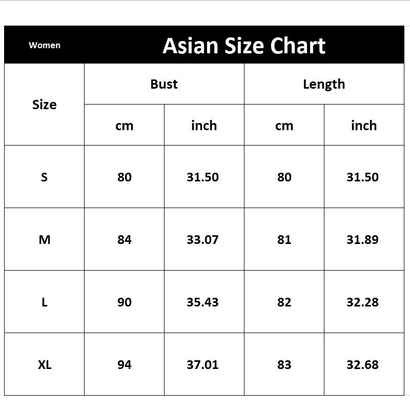 1.The real color of the item may be slightly different from the pictures shown on website caused by many factors such as brightness of your monitor and light brightness when photo taking. 2.Our clothes size is Asian Size , take care the size difference between US,EU,UK & AU size , please kindly check the size chart carefully before order .Maybe it is little deviation (about 1-3 cm) as manual measurement.