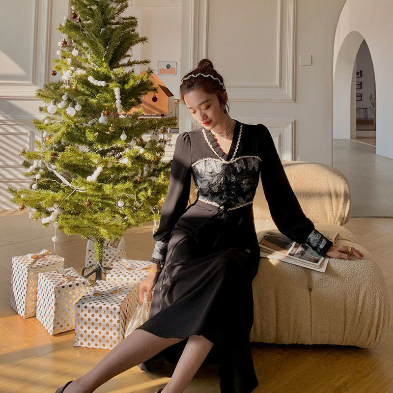 Patchwork Party Dress Women Spring Elegant Designer Lace Midi Dress Female Casual Print French Retro Korean Dress Women 2021 New