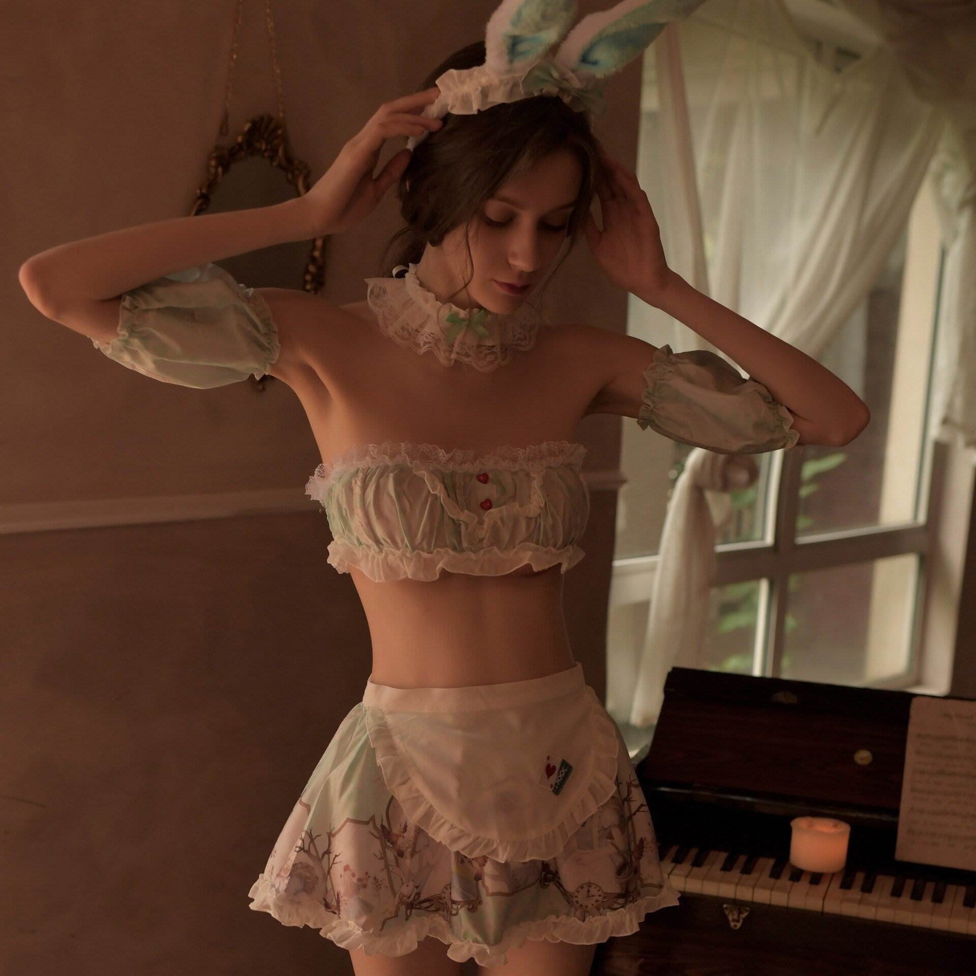 Sexy Lingerie Women's Lace Sexy Split Anime Underwear 8 Pces Set Lolita Nightdress Maid Rabbit Uniform Temptation Exotic Costume