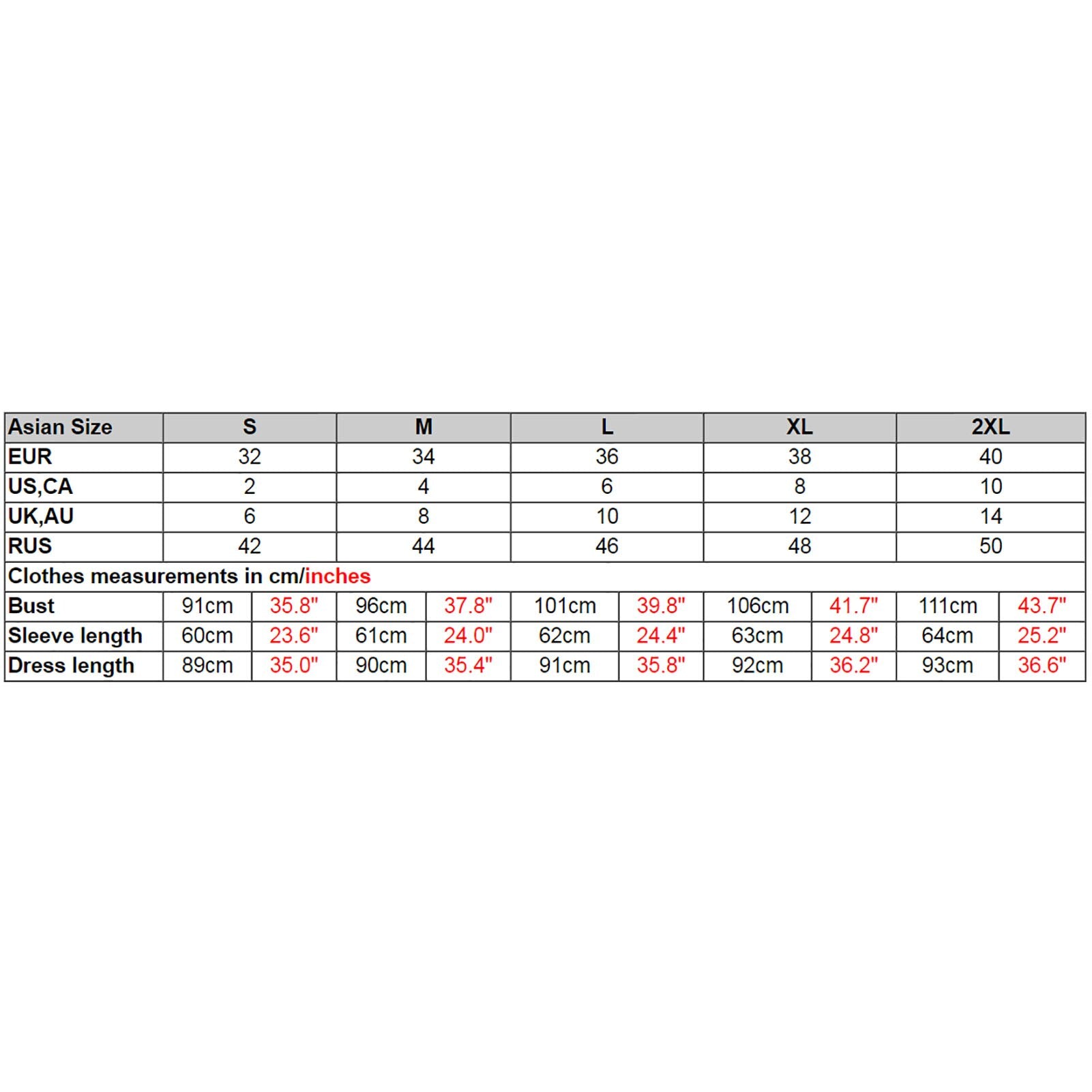 | Dress length | 89cm | 35.0" | 90cm | 35.4" | 91cm | 35.8" | 92cm | 36.2" | 93cm | 36.6" |