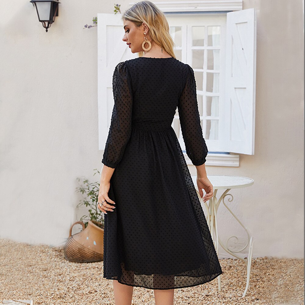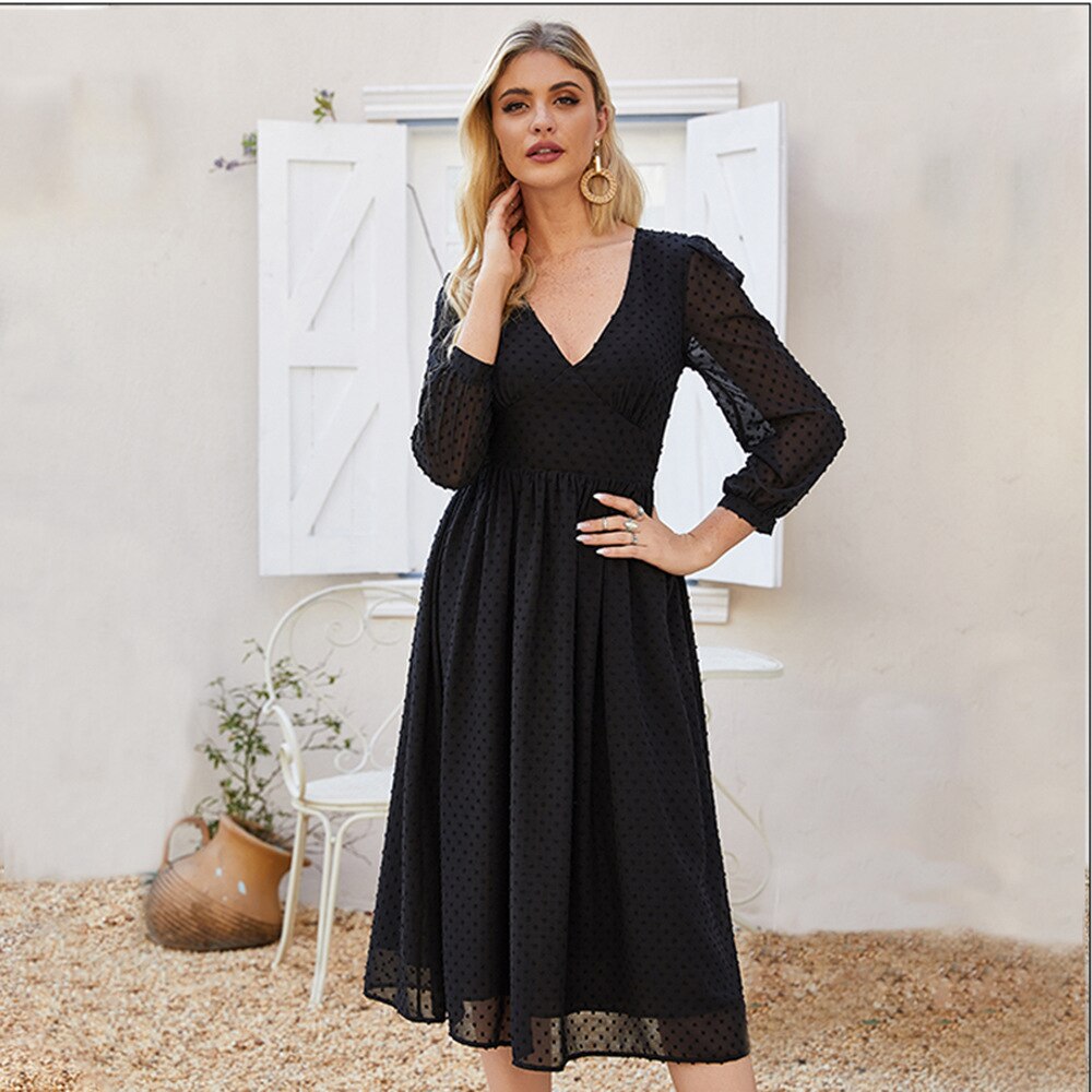 Spring Autumn Women's Semi-transparent Long Sleeves Solid Dress Knee-Length A-Line Design for Work
