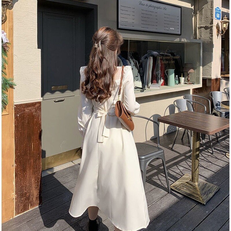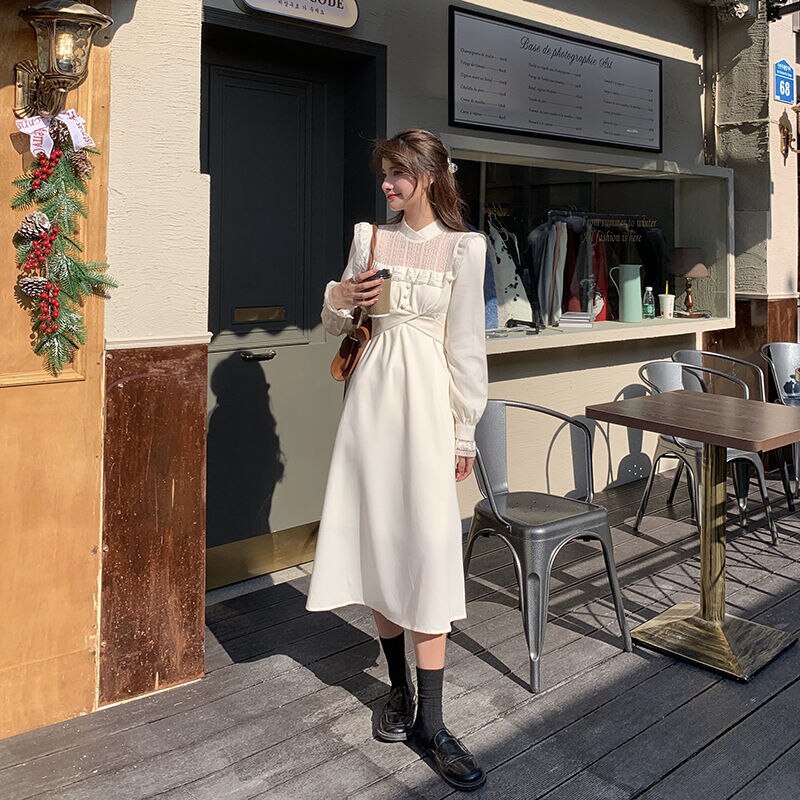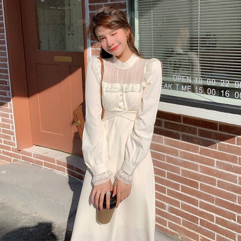 Spring Fairy Dress Women Elegant Lace Patchwork Sweet Party Midi Dress Hollow Out High Street Korean Kawaii Dress Women 2021 New