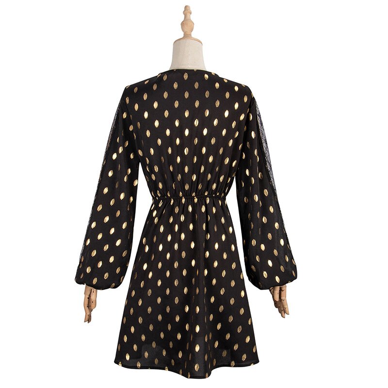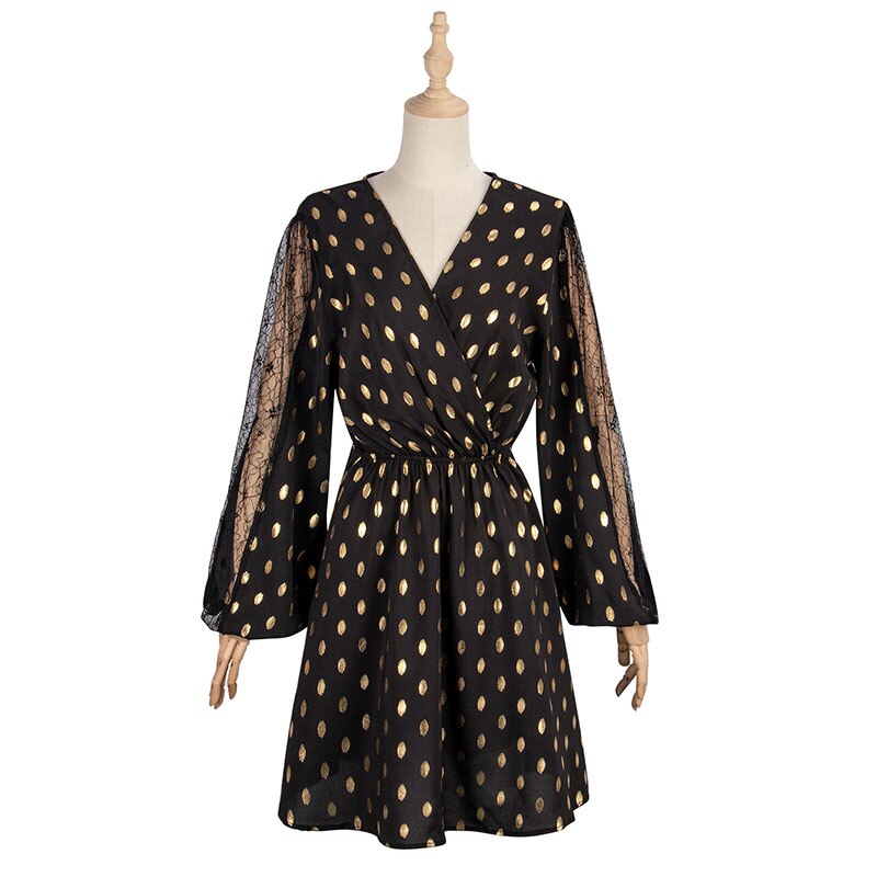 Spring Summer Ladies Fashion Bronzing Print Dress Women 2021 New Casual Mesh Full Sleeve High Waist Above Knee Short Dress