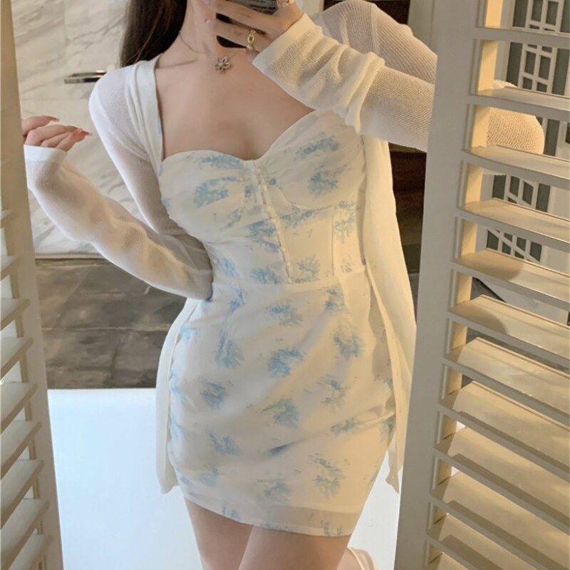Summer 2021 Beach Boho Floral Dress Women Bodycon Sexy Elegant Mini Party Dress Ladies Sheath Print Casual Korean Strap Sundress