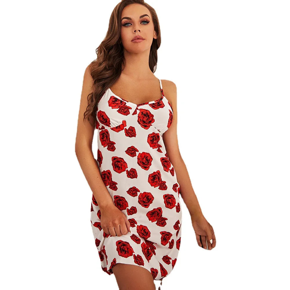 Summer backless chemise floral nightgown casual nightdress pajama dress