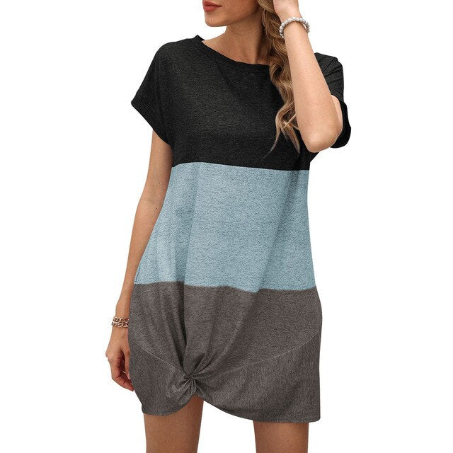 Summer Dress Women платье 2021 Splicing Mini Dress Twist-Hem  A-Line Dress Gown Casual Loose Vestidos de mujer Women's Dress