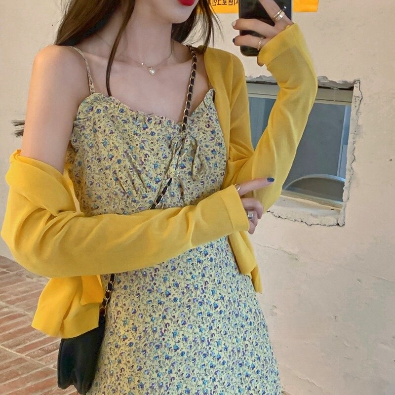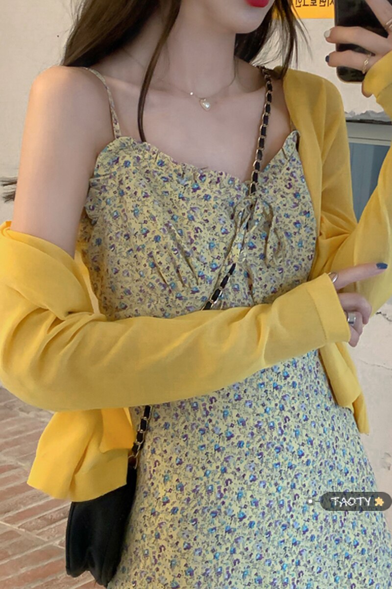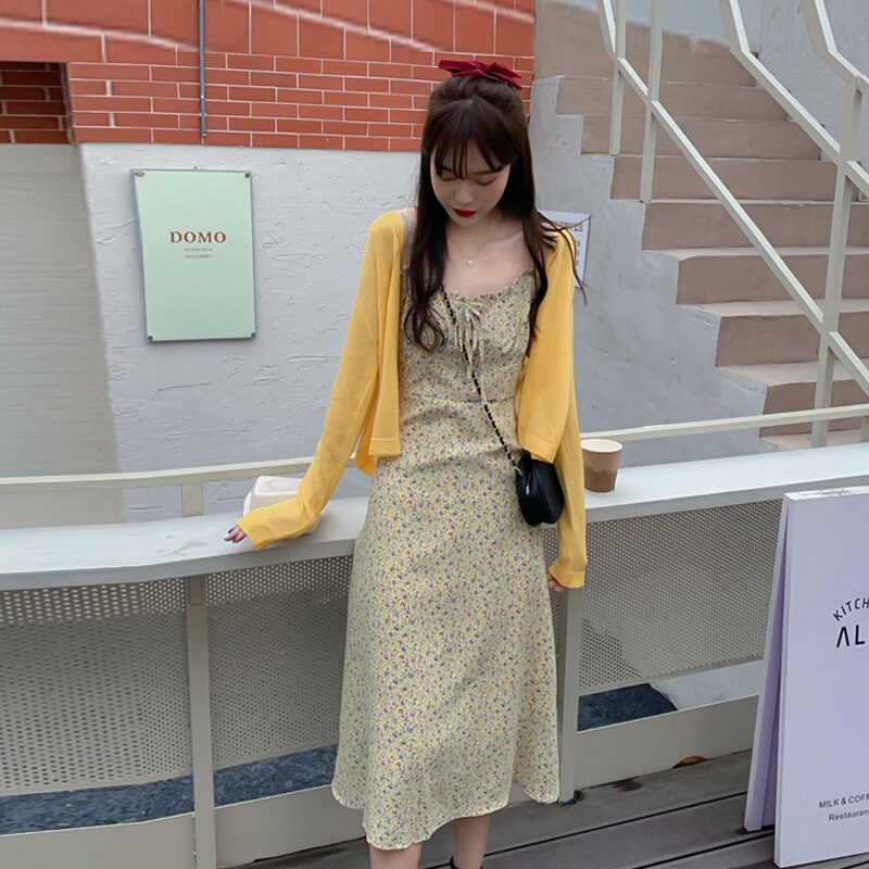 Summer Elegant Print Floral Dress Women French Korean Bow Slim Strap Dress Female Casual Holiday Party Beach Midi Dress 2021 New