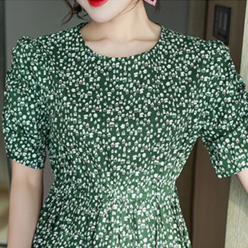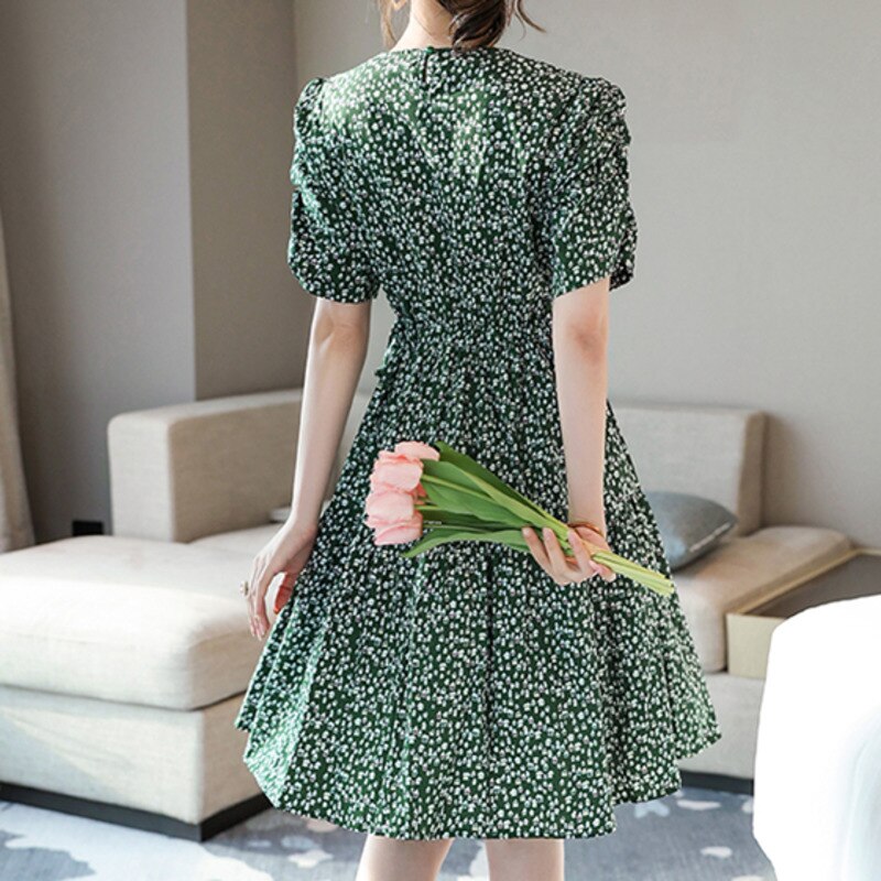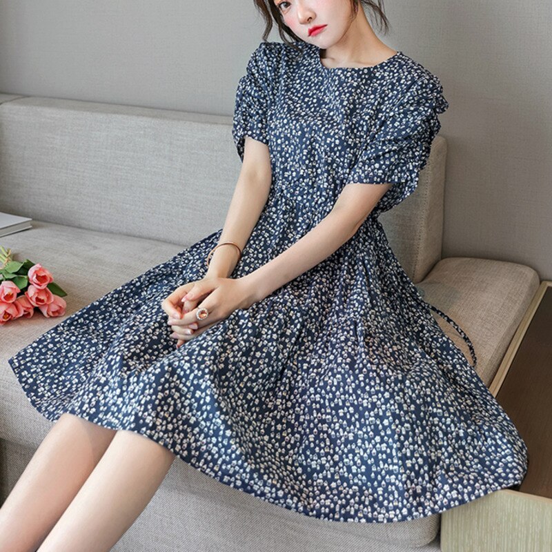 Summer Floral Print Dress Women Short Sleeve High Waist Female Casual Style Party Robe 2021 New Sundress Fashion Pleated Vestido