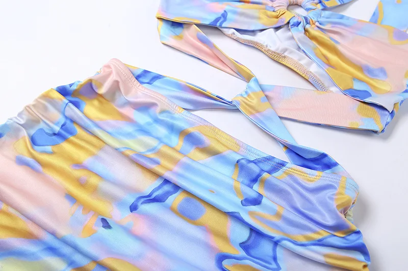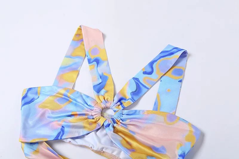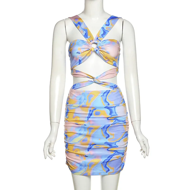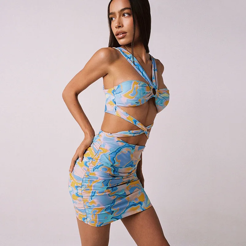 Summer For 2022 Strap Women's Clothes Print Halter Cutout Elegant Casual Basics Evening Party Sexy Prom Corset Mini Dress