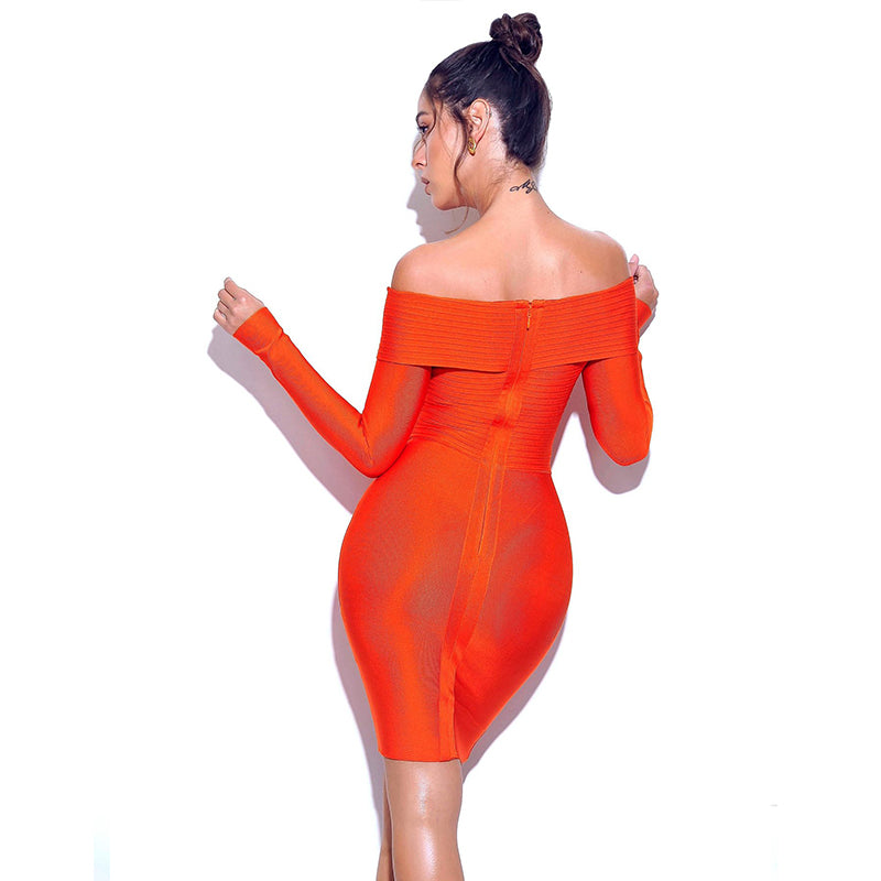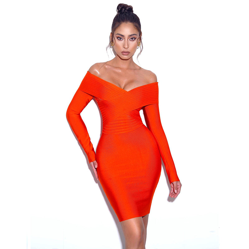 Wholesale High Quality Sexy Off Shoulder V Neck Long Sleeve Elegant Celebrity Party Bandage Dress