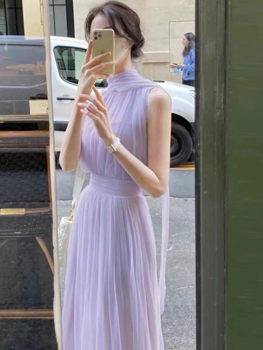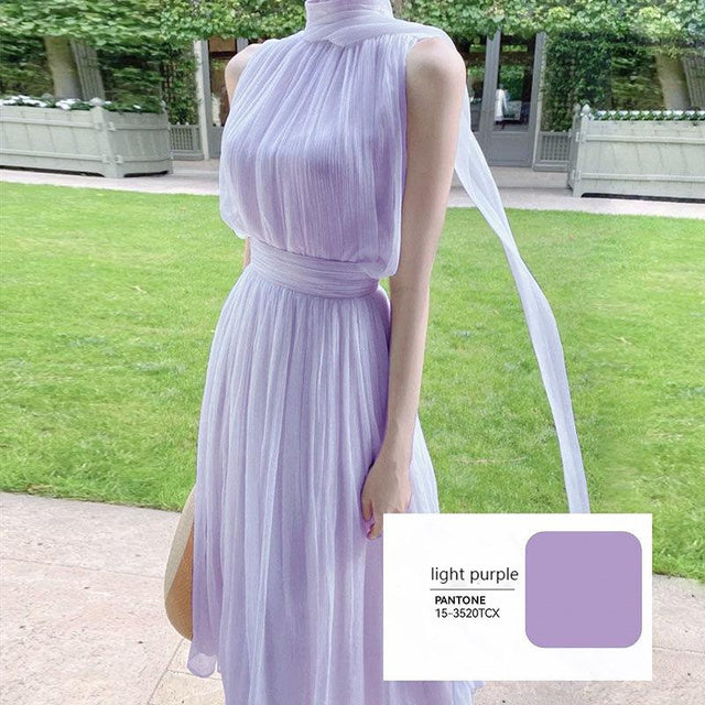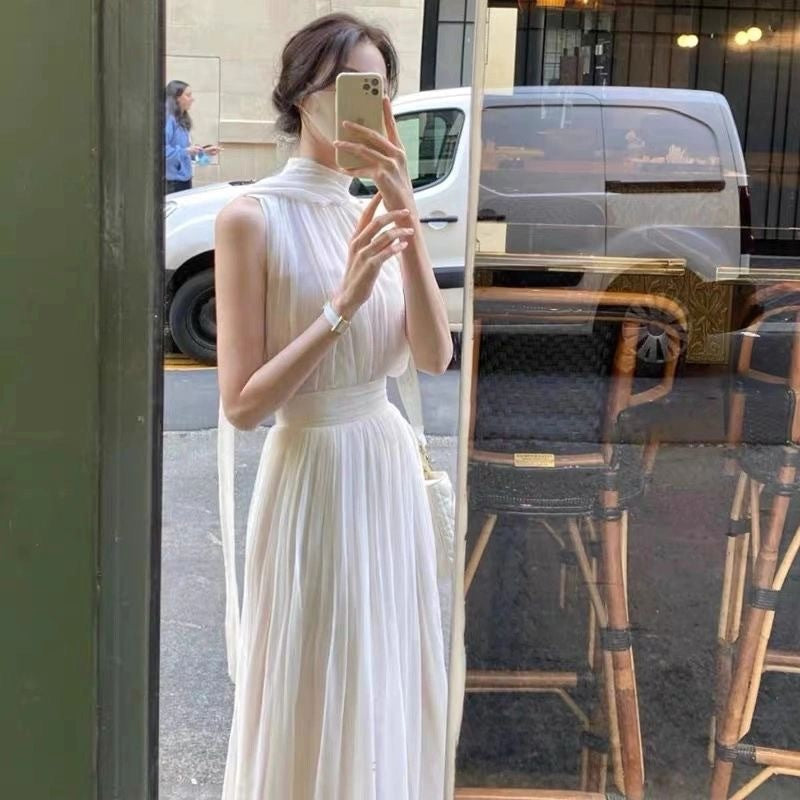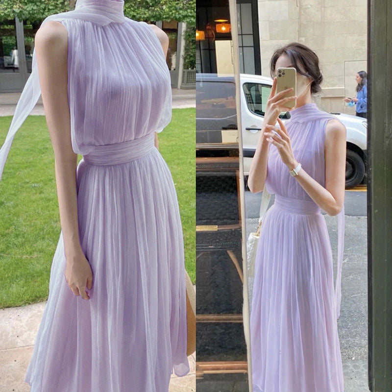 Women's 2022 Spring And Summer New Style Gentle Elegant Long Skirt High Collar Sleeveless Fashion Sexy Dress