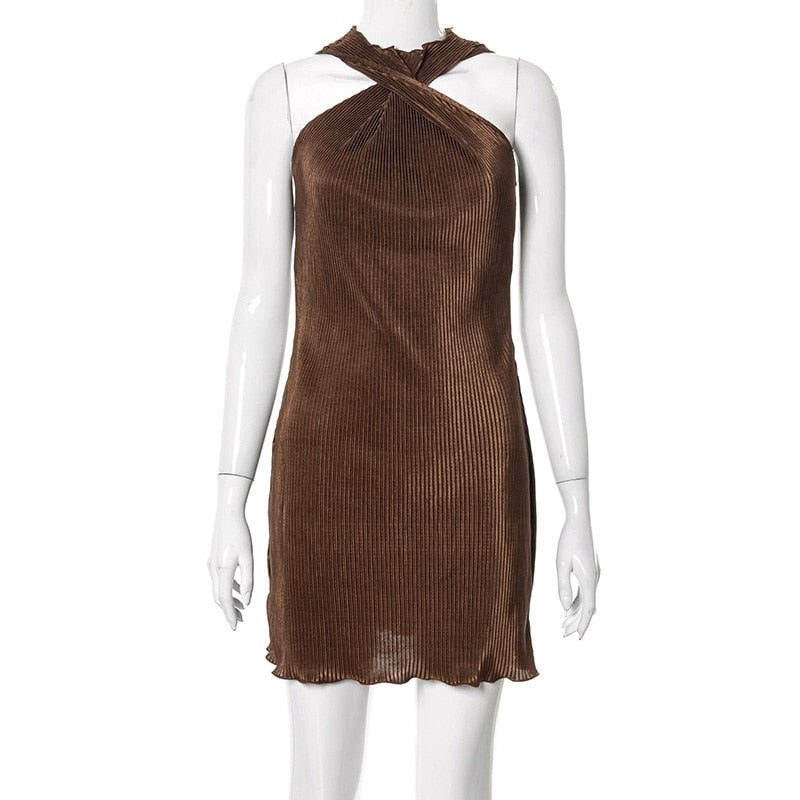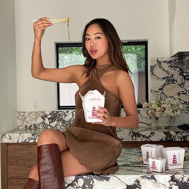 Women 's Dress Cross Halter Off Shoulder Woman Robe Fungus Female Mini Dress Summer Women Clothes Fashion Woman Party Vestidos