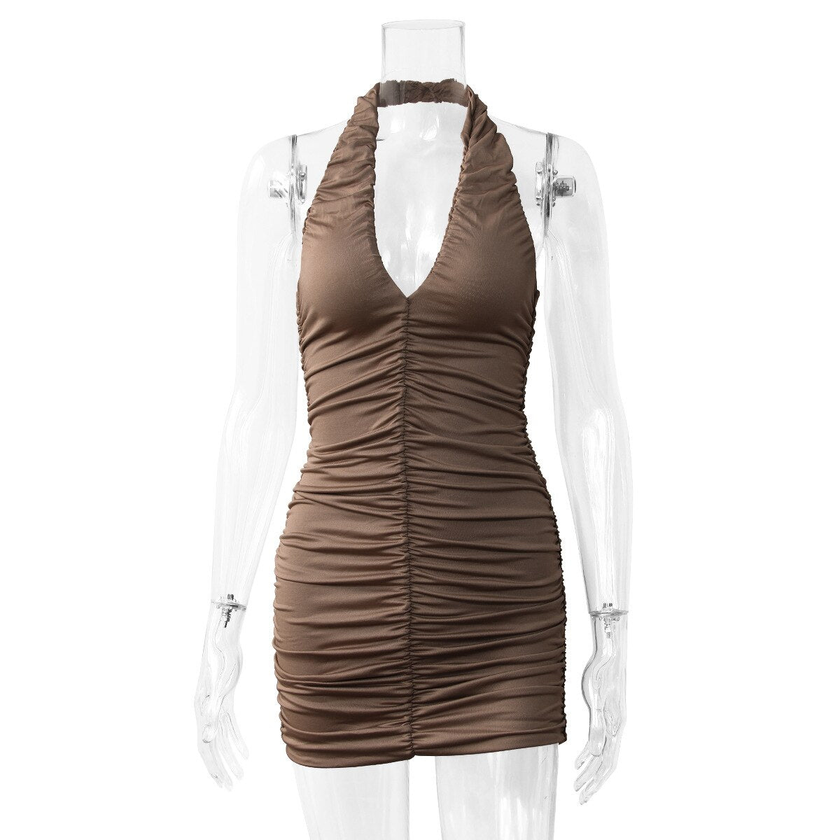 Women's Sexy Hanging Neck Sleeveless Halter V-neck Slim Pleated Hip Skirt 2022 Summer Women Eveving Dress