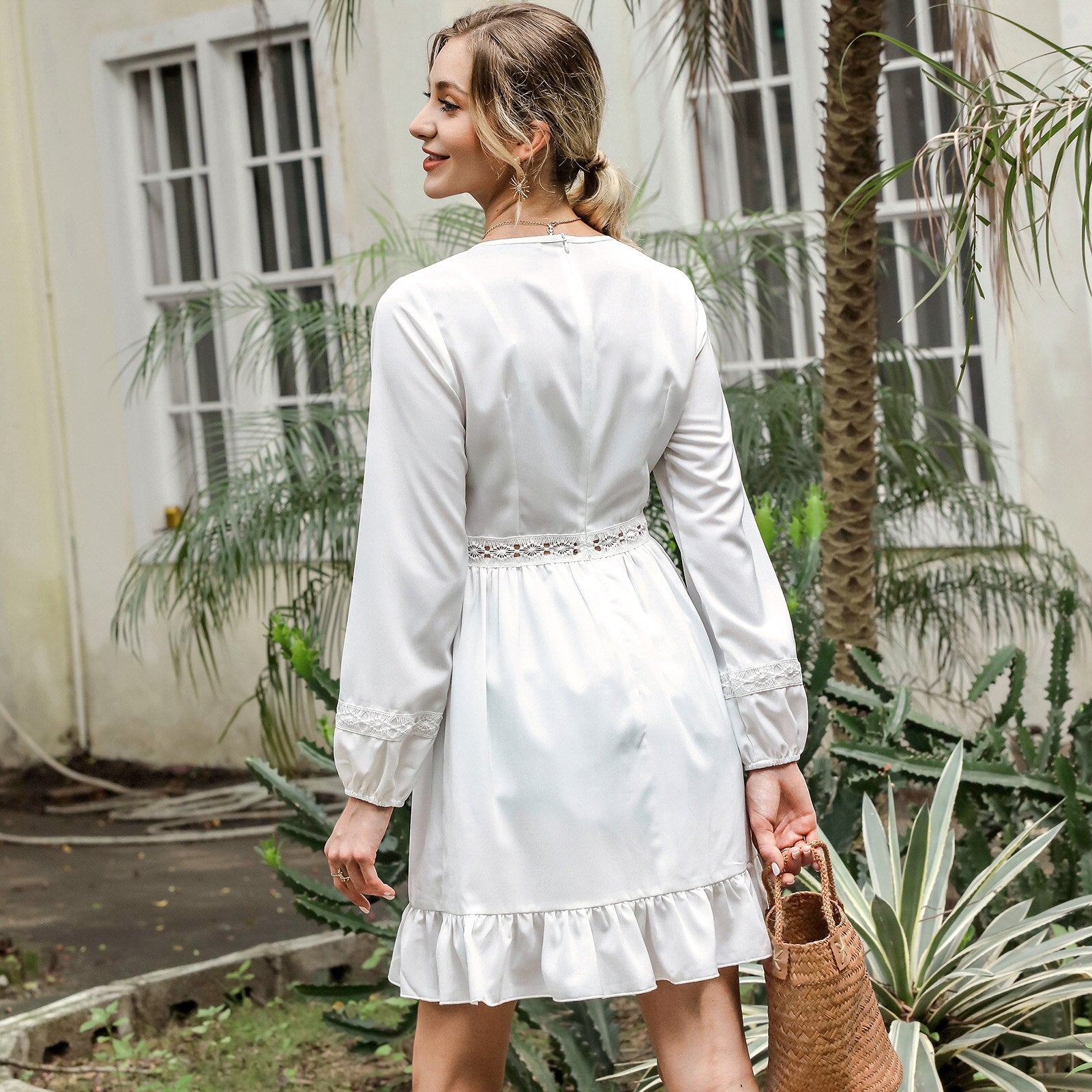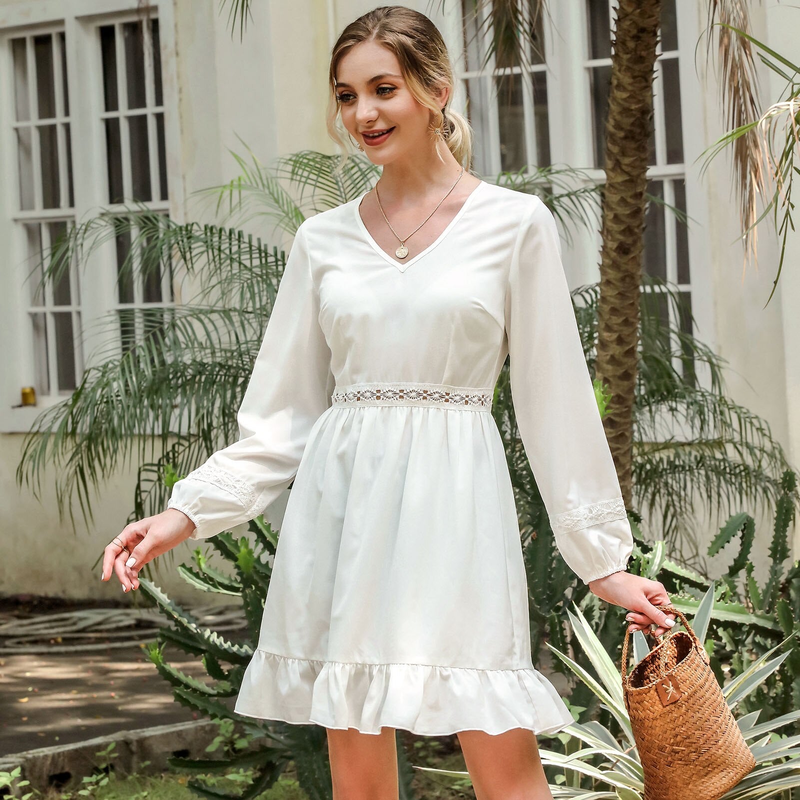 Soft and comfortable fabric for summer. It has V-neckline, long lantern sleeves, lace splicing and ruffle hem. Highly recommend it for date, wedding, shopping, vacation and more.