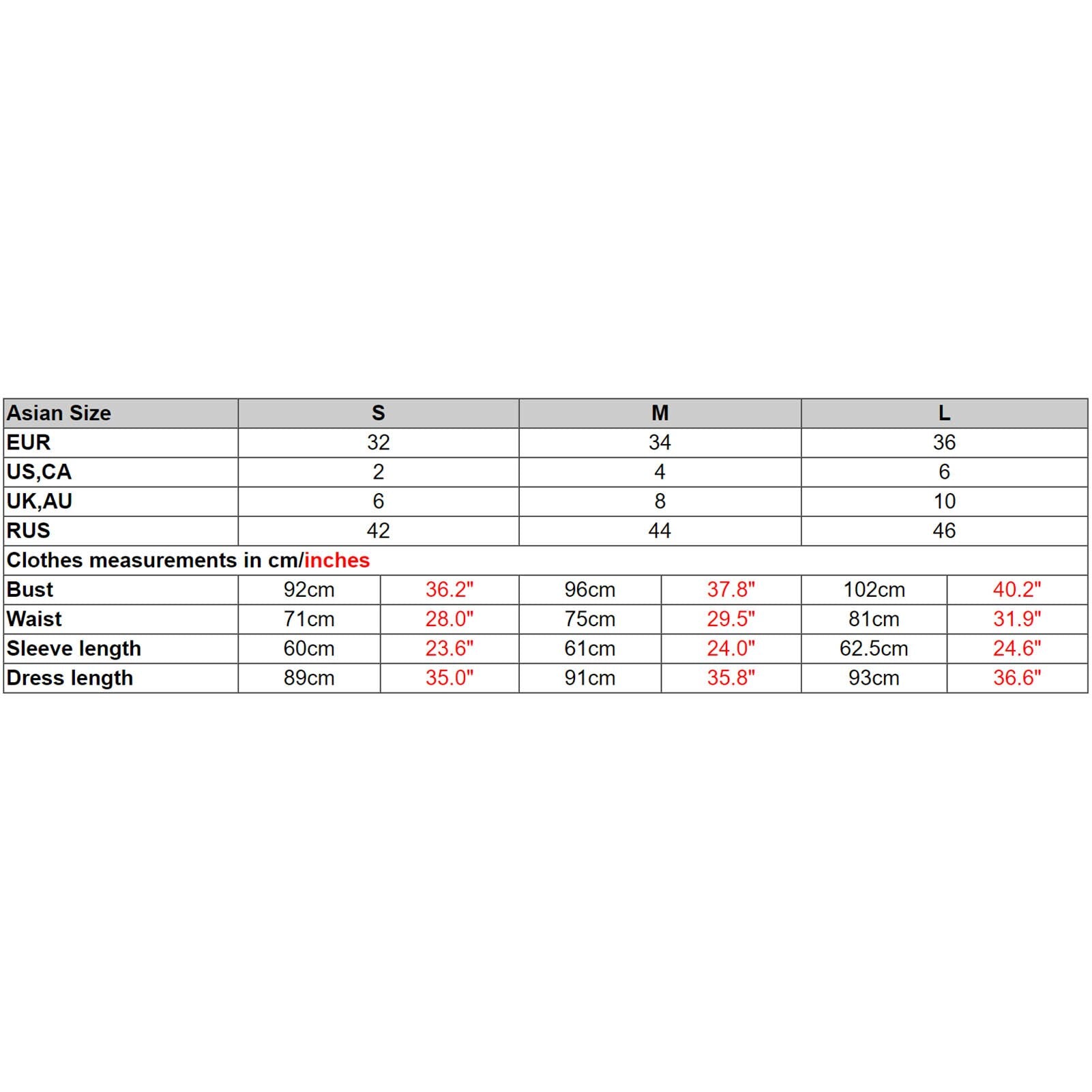 | Dress length | 89cm | 35.0" | 91cm | 35.8" | 93cm | 36.6" |