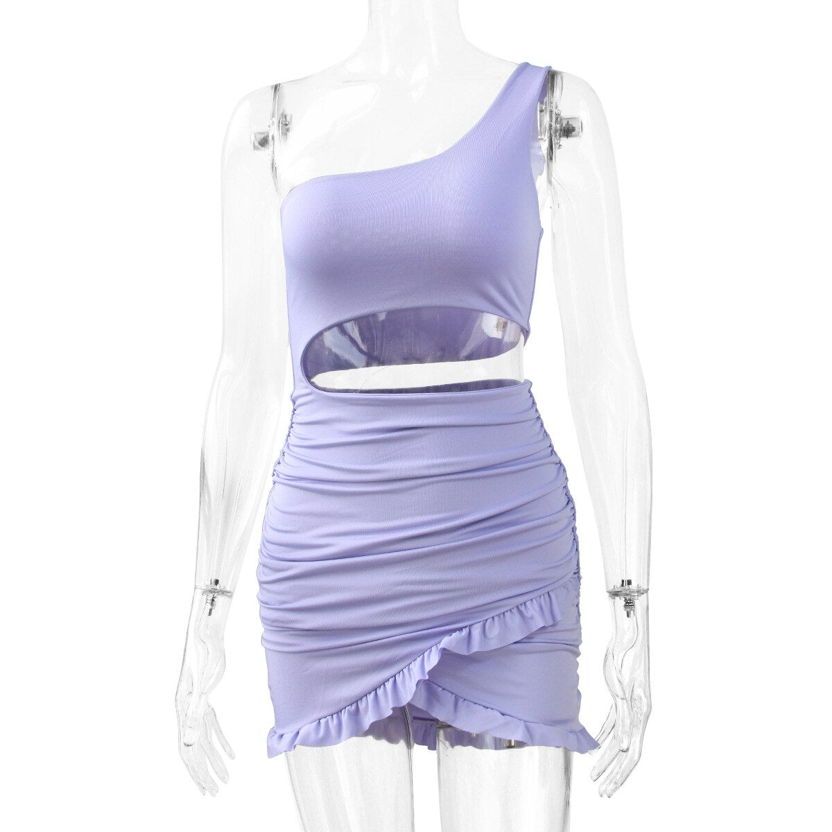 Women One Shoulder Mini Bodycon Summer Dress Club Hollow Out Ruched Backless White Purple Party Ruffle Bandage Women Sexy Dress