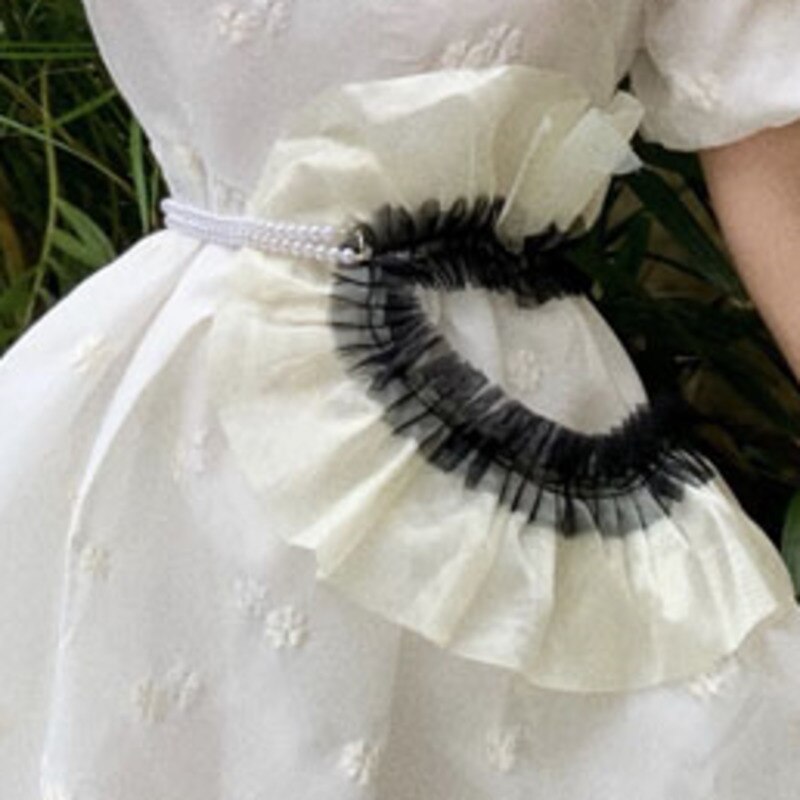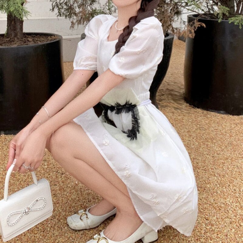 Women Robe 2021 Summer Jacquard New Slim Foreign Style A-line Dress Beading Chain Waist Cover Fashion Puff Sleeve O-neck Vestido
