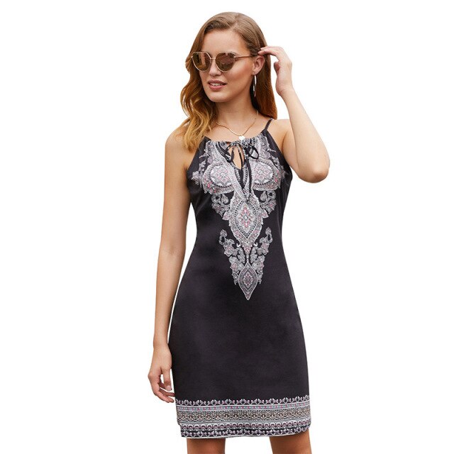 Women Sling 2021 New Bohemian Print A-Line Off-The-Shoulder Dress
