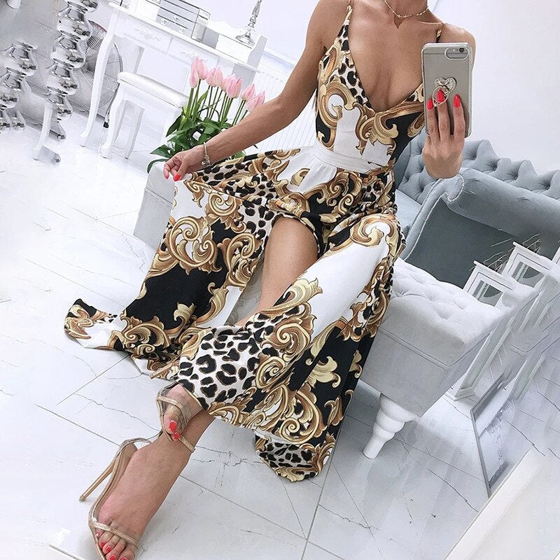 Women's leopard print V-neck sexy long dress for night party fashion slim dress