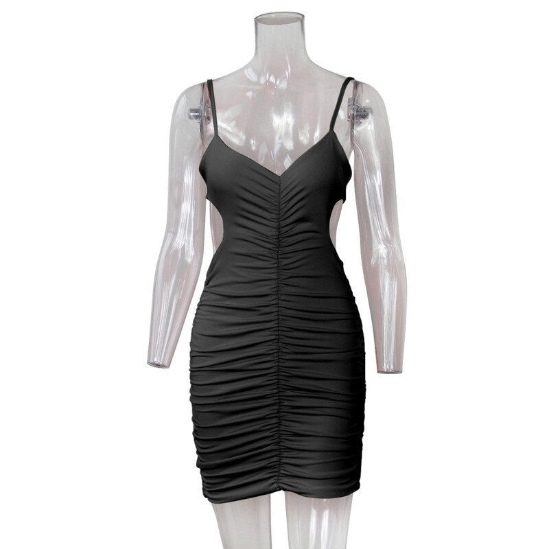 2021 Summer Autumn New Women's Sexy V-neck Suspender Pleated Women Party Beach Bodycon Casual Dress Elegant Ladies Dresses Boho
