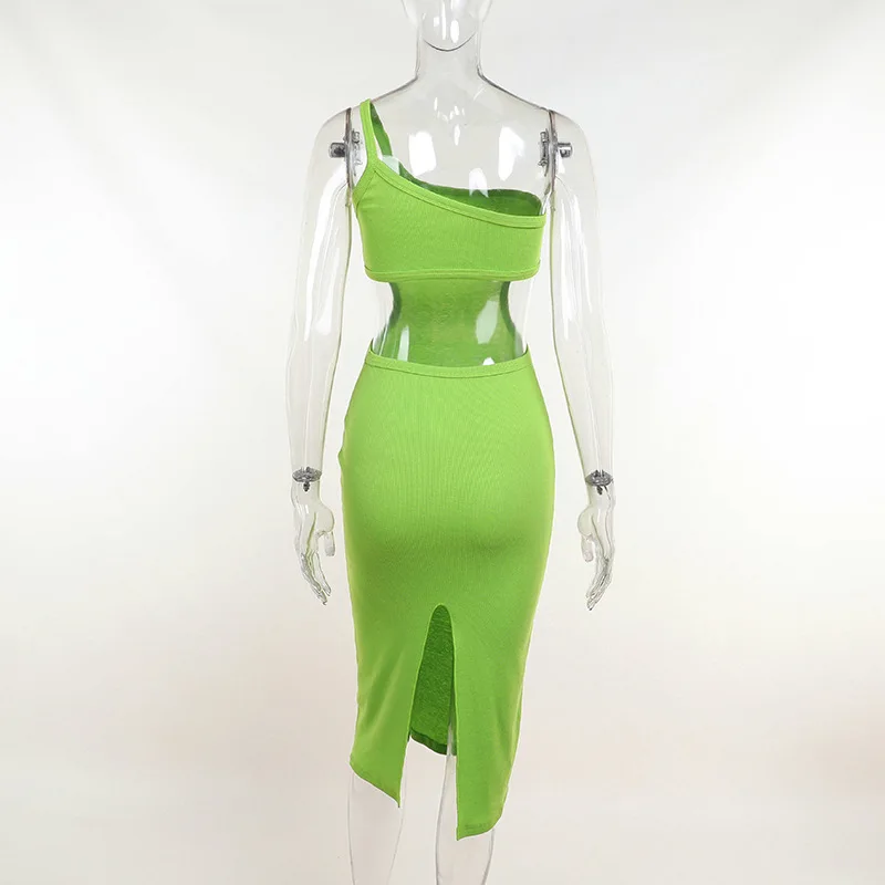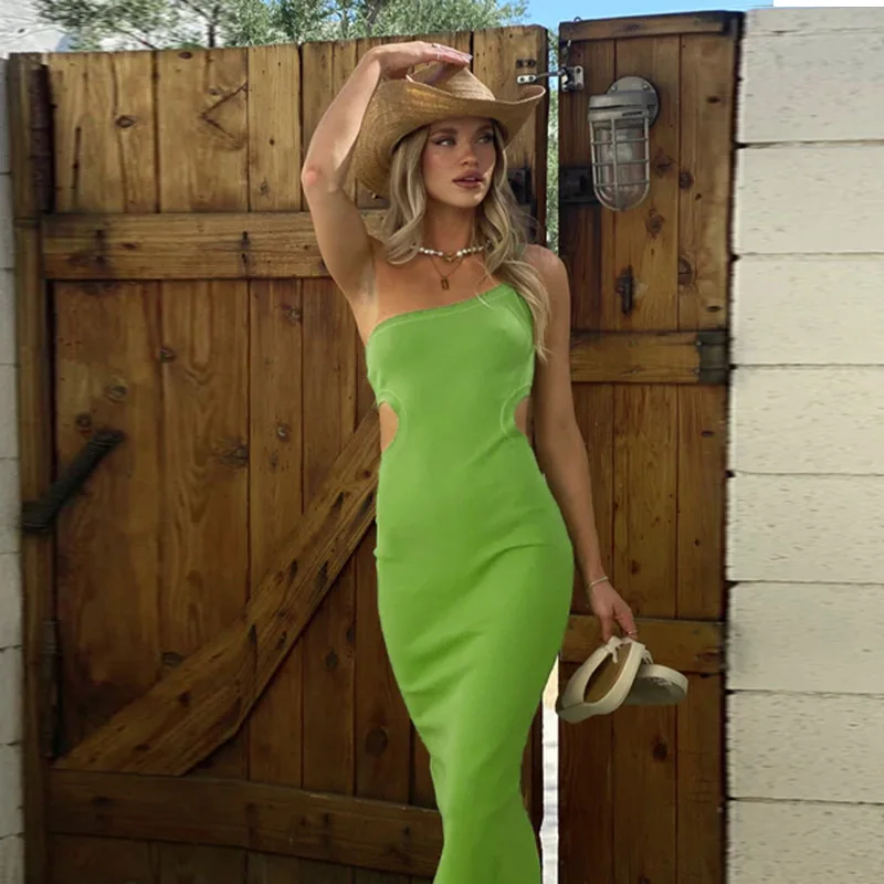 2022 Elegant One Shoulder Summer Women'S Clothes Blue Romper Sexy Cutout Slit Evening Party Prom Maxi Dresses Vestidos Streetwea