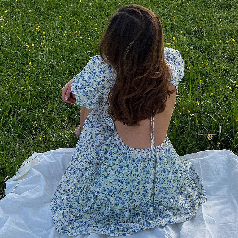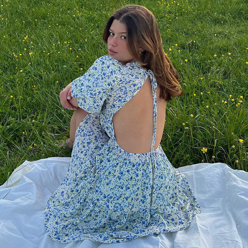 2022 Elegant Print Sexy Backless Bandage Mini Dress Club Party Outfits for Women Summer Short Sleeves Dresses Casual Vacation