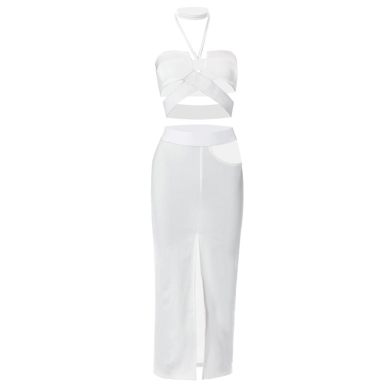 2022 Ribbed Knitted Sexy Backless Split Maxi Dress for Women Summer Holiday Sleeveless Straps Bodycon Dresses Clothes Beach