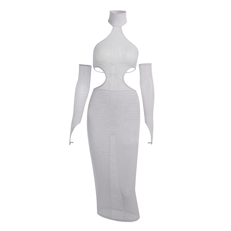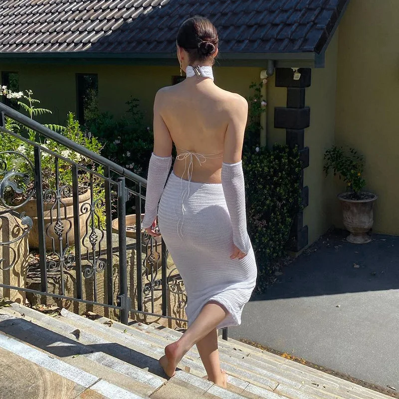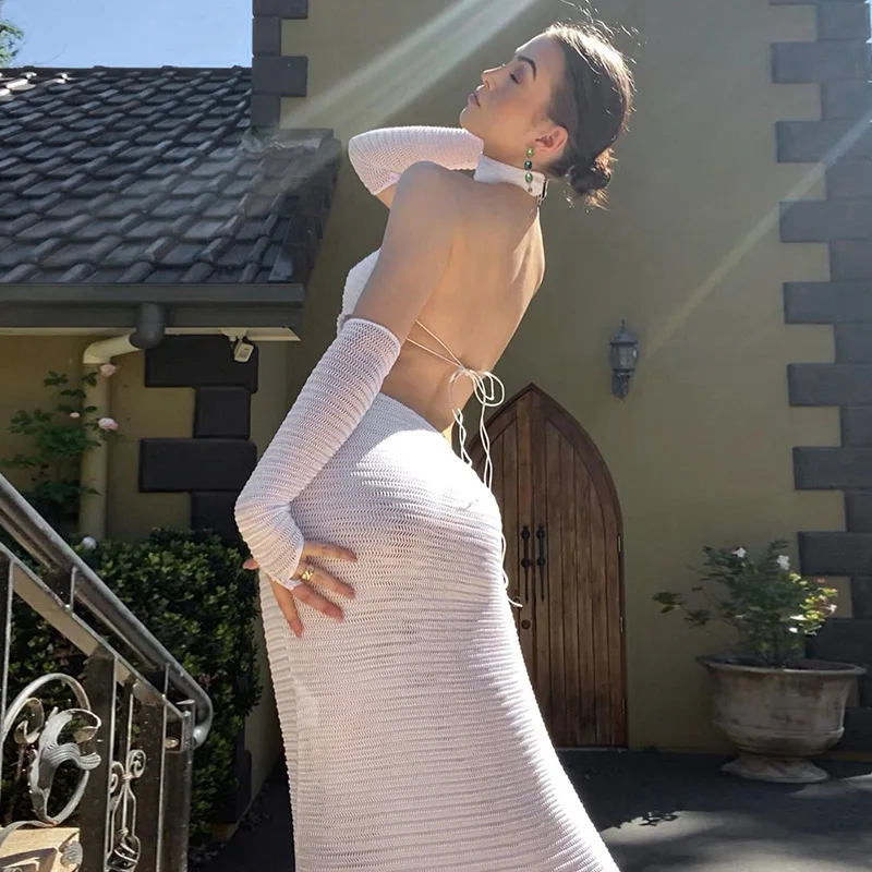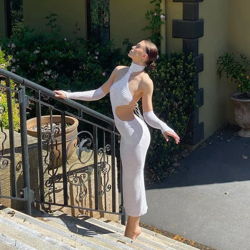 2022 Sexy Black Halter Elegant Maxi Dress With Glovesfor Women Sleeveless Summer Club Party Dresses Outfits Clothes Vestidos