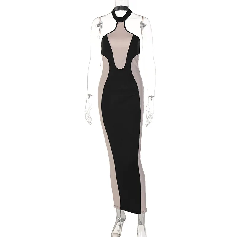 2022 Sexy Halter Spliced Elegant Tie Up Maxi Dress for Women Sleeveless Summer Club Party Gown Dresses Outfits Clothes Vestidos
