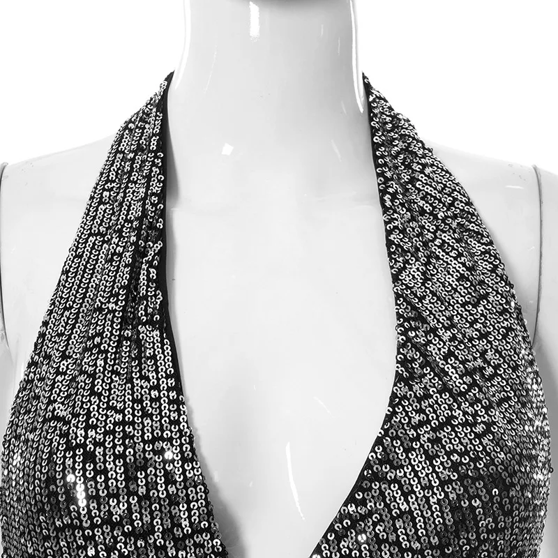 2022 Summer Fashion Women'S Clothes Black Halterneck Sequin Romper Sexy Split Evening Party Prom Mini Dresses Vestidos