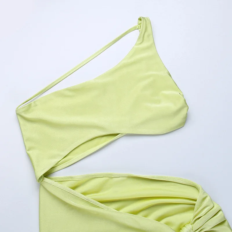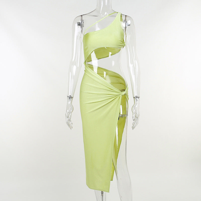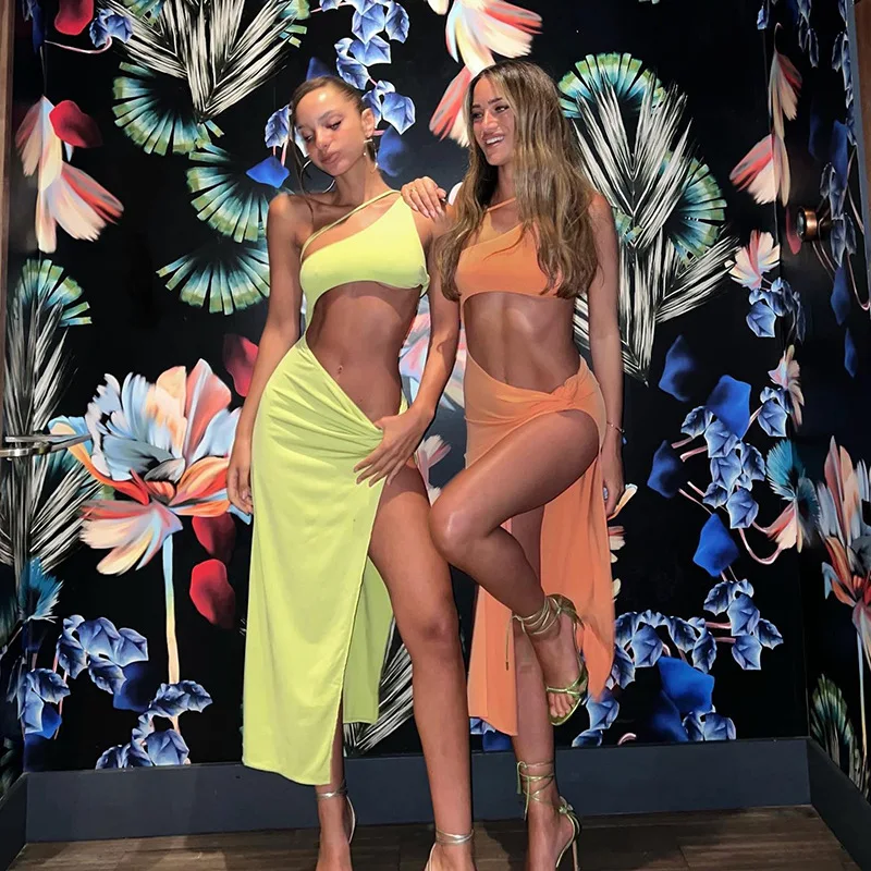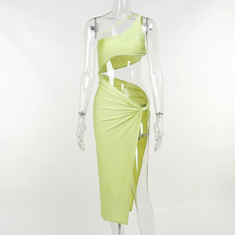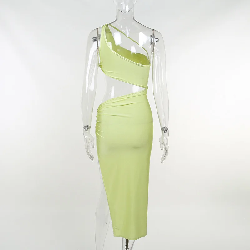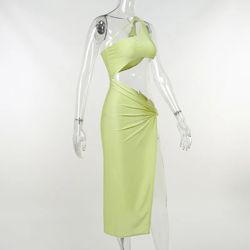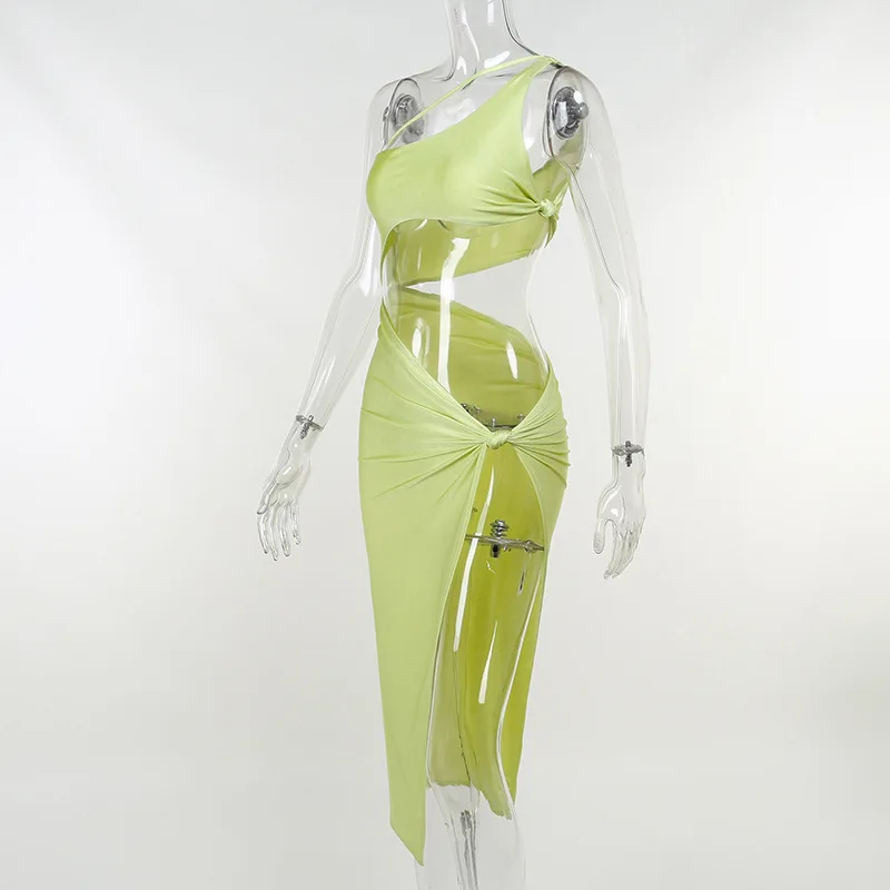 2022 Summer One Shoulder Midi Dress for Women Sleeveless Backless Split Club Party Fashion Sexy Cut Out Dresses Clothes Vacation
