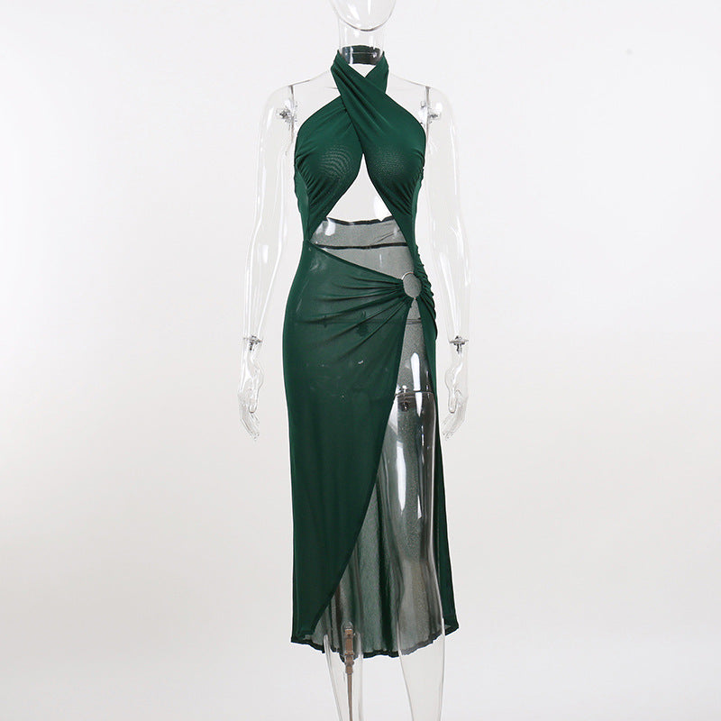 2022 Summer Women's Clothes Spaghetti Strap Halter Sexy Backless Split Maxi Dress Elegant Sleeveless Club Party Dresses Beach