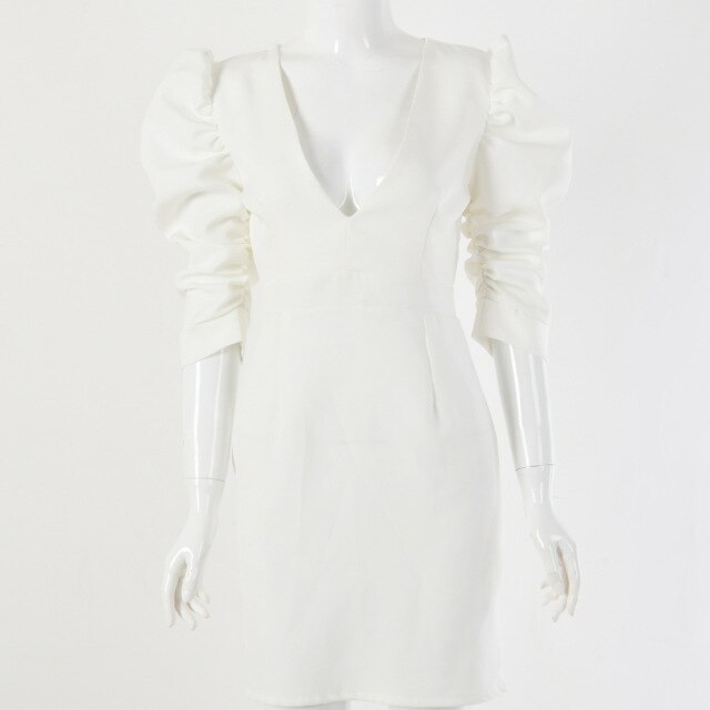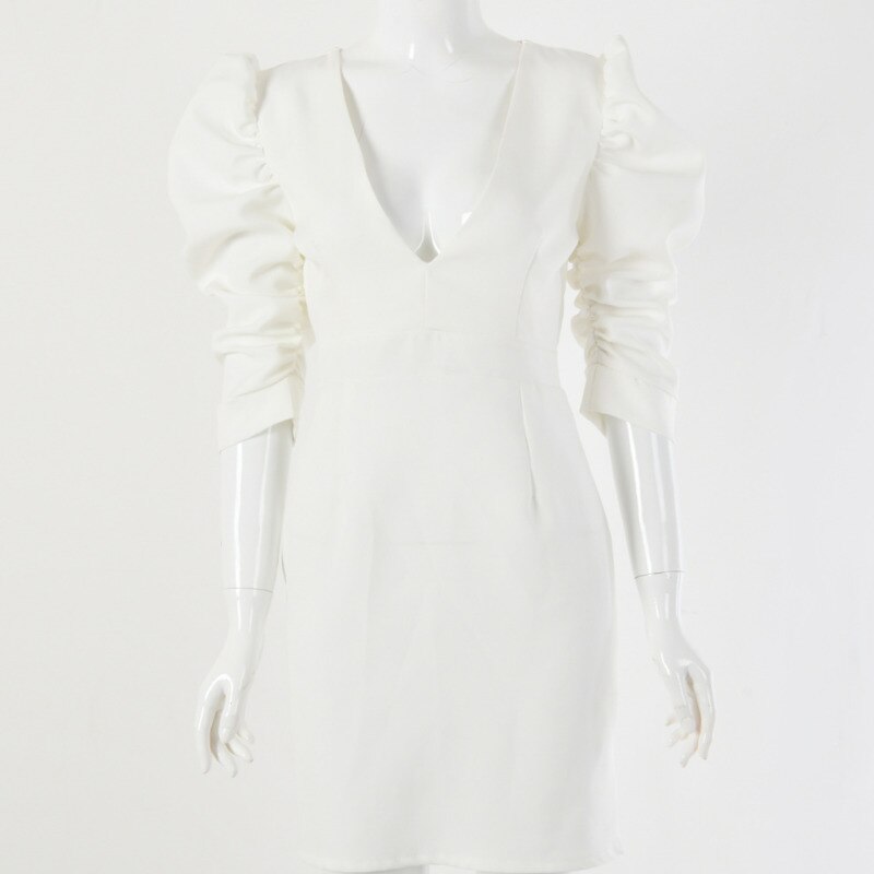 Autumn Women's Sexy Open Back V-neck Princess Sleeve Women Party Beach White Bodycon Dress Elegant Ladies Dresses Clothes Gothic