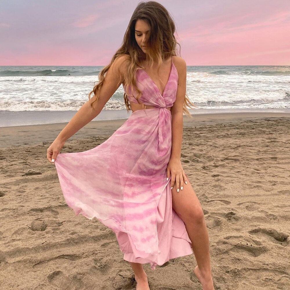 Blackless Chiffon Sexy Beach Maxi Bohemian Dress Women Summer Floral Boho Slip Long Dresses Vacation Party Club Sundress 2021