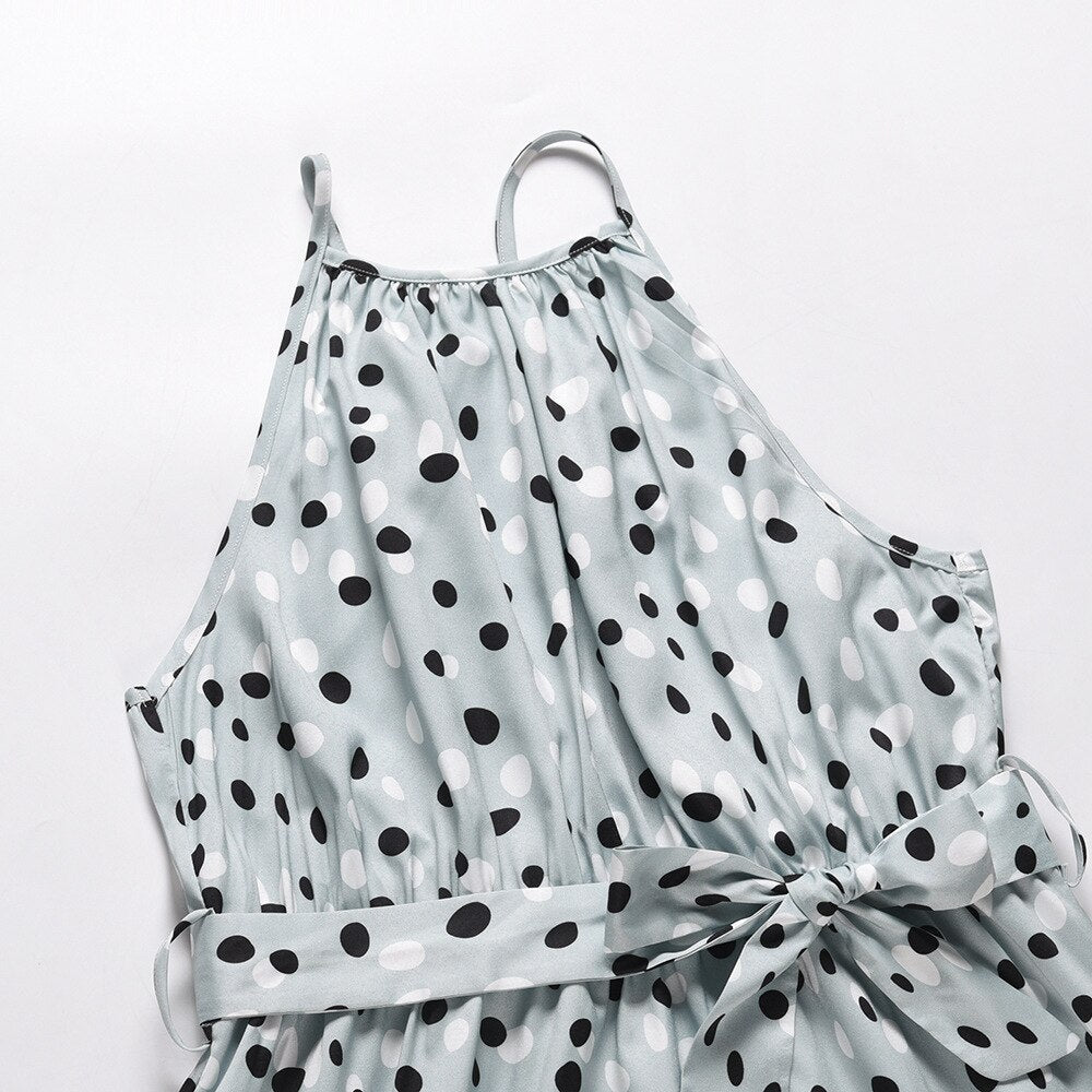 Casual Sleeveless Polka Dot Backless Midi Dress Woman Summer Fashion O-neck Belt White A-line Dresses For Women 2021 Robe Femme