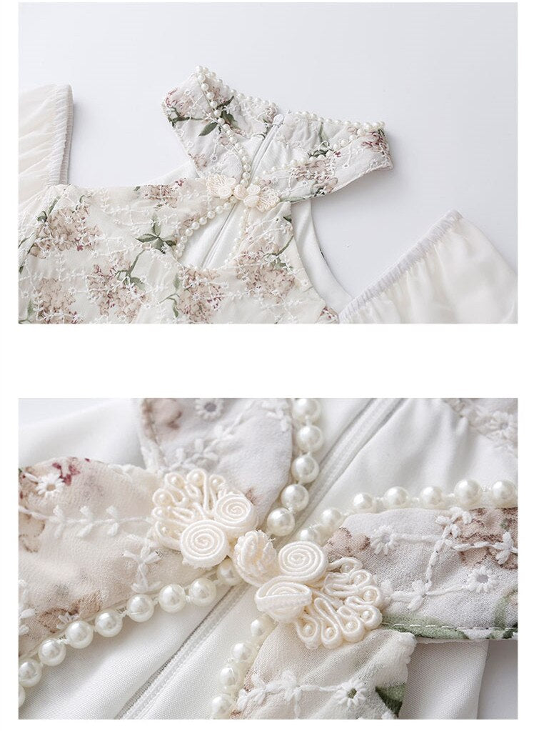 Cheongsam Retro Elegant Dresses for women Fall Beaded Chic Hollow Sexy Halter Neck Stand Collar Fit Floral Dress Fashion Femme
