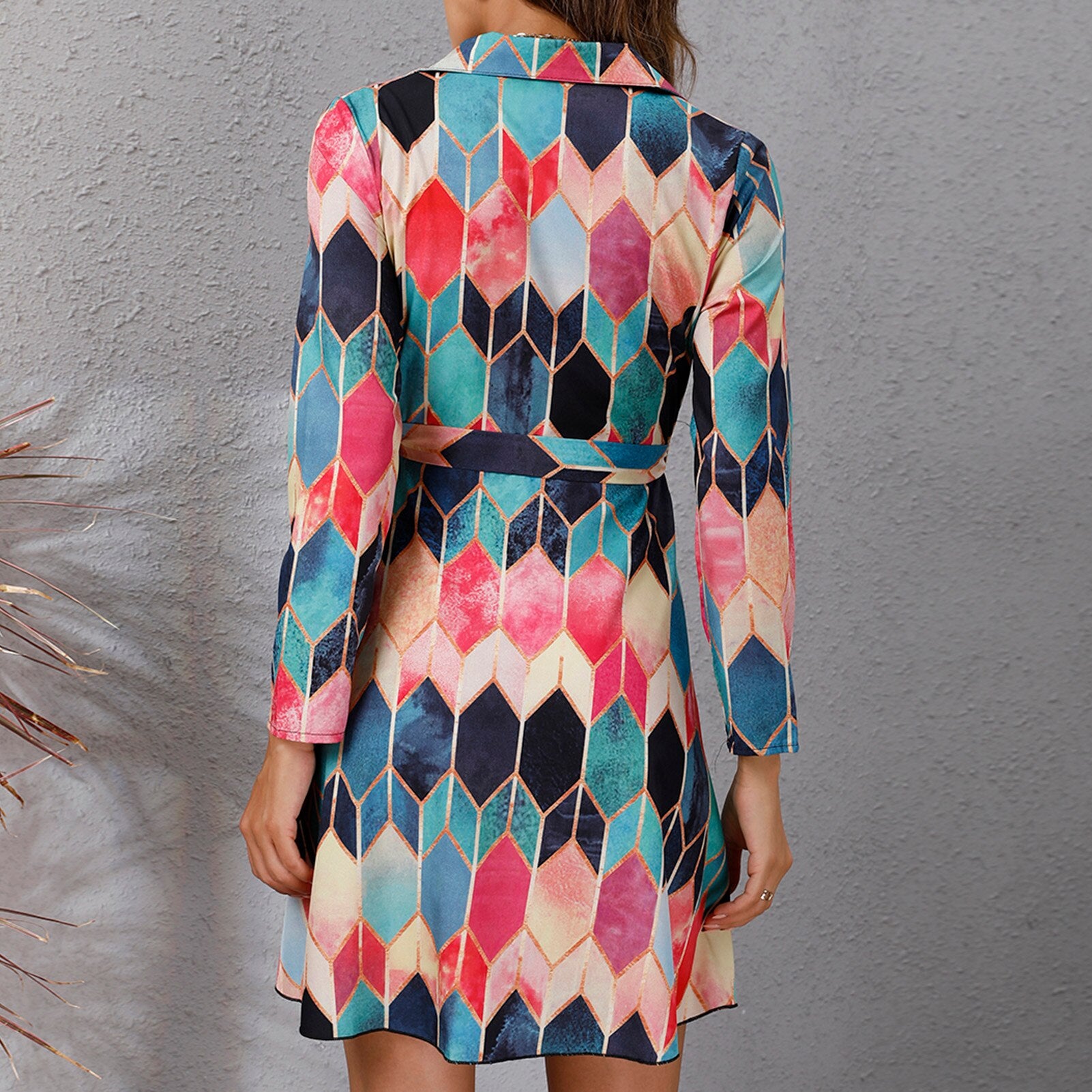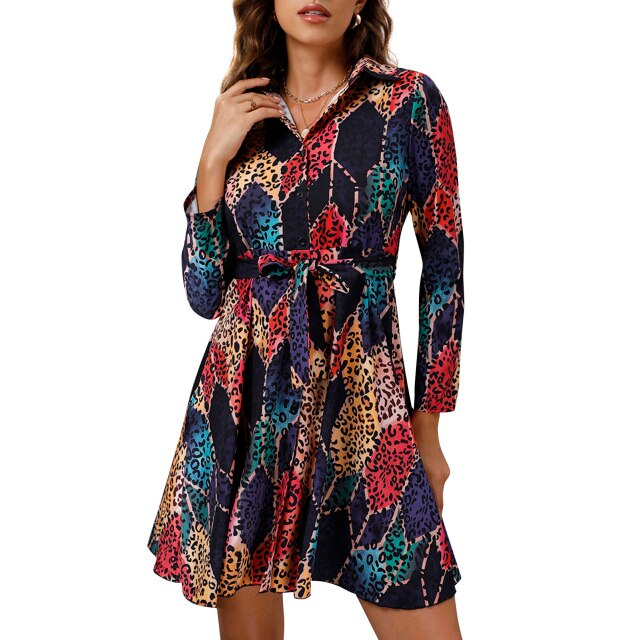 Mini dresses are never a poor choice when deciding on a going-out outfit. If you're in the mood to add some color to your closet, you can't go wrong with this colorful printed dress.