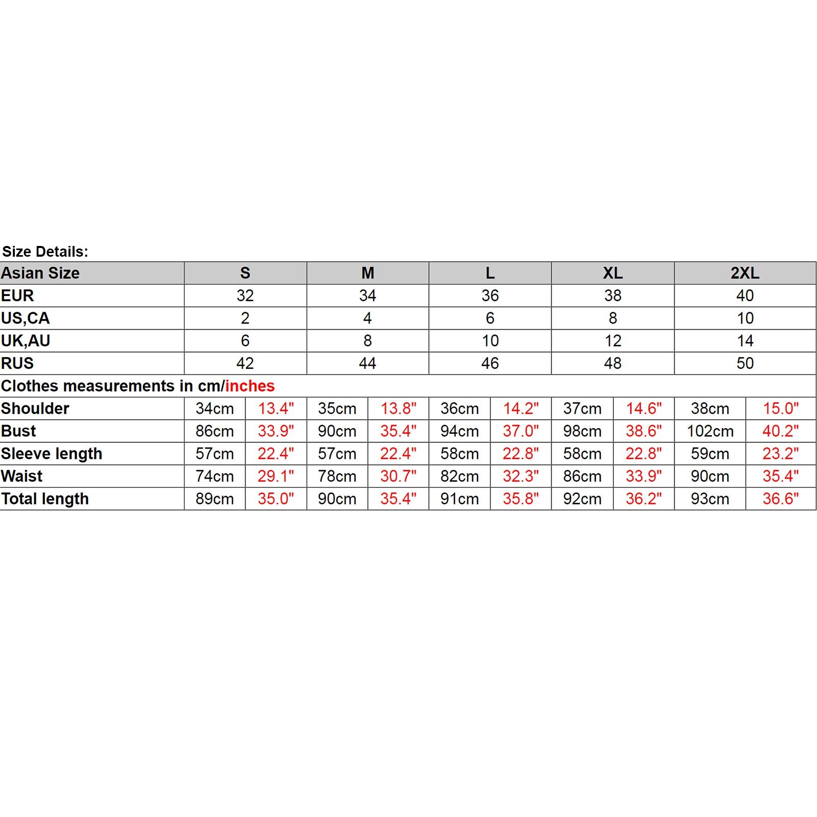 1. This clothing size information is just for reference only, please check the above detailed measurement to choose the correct size, and allow 1-2cm (0.4-0.8") differences due to manual measurement, thanks.