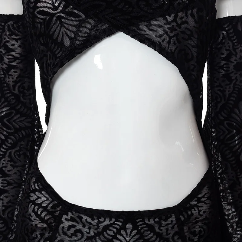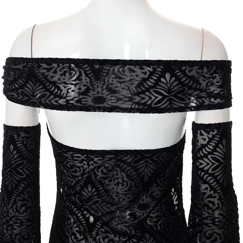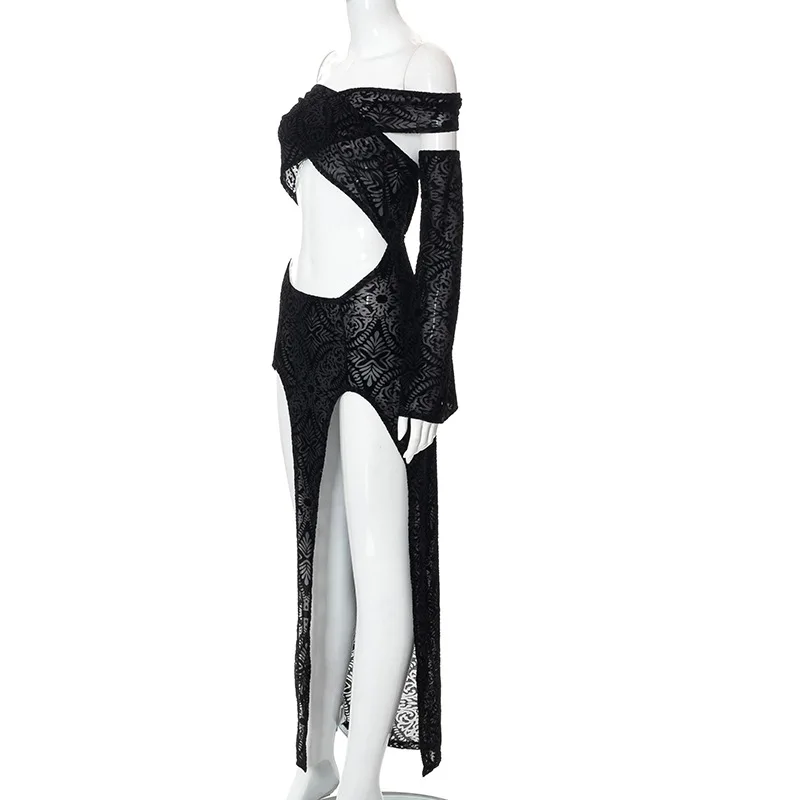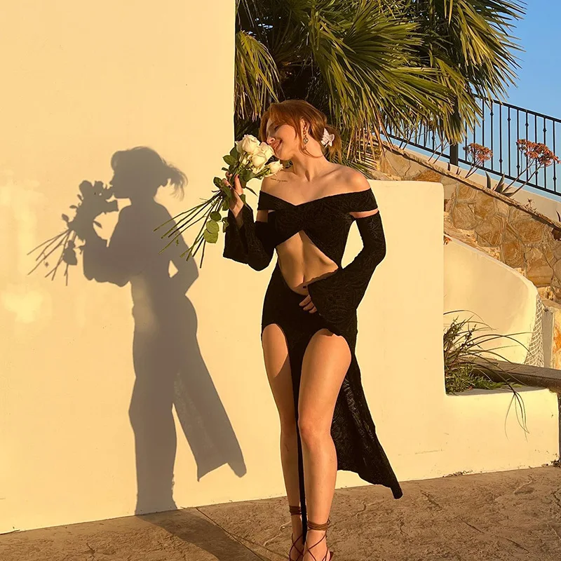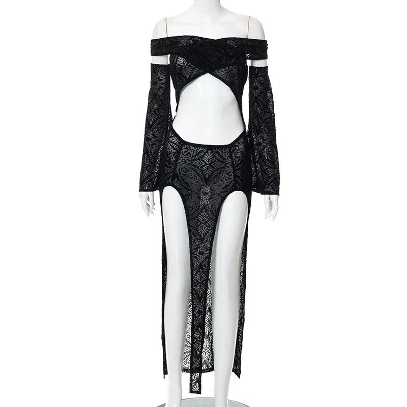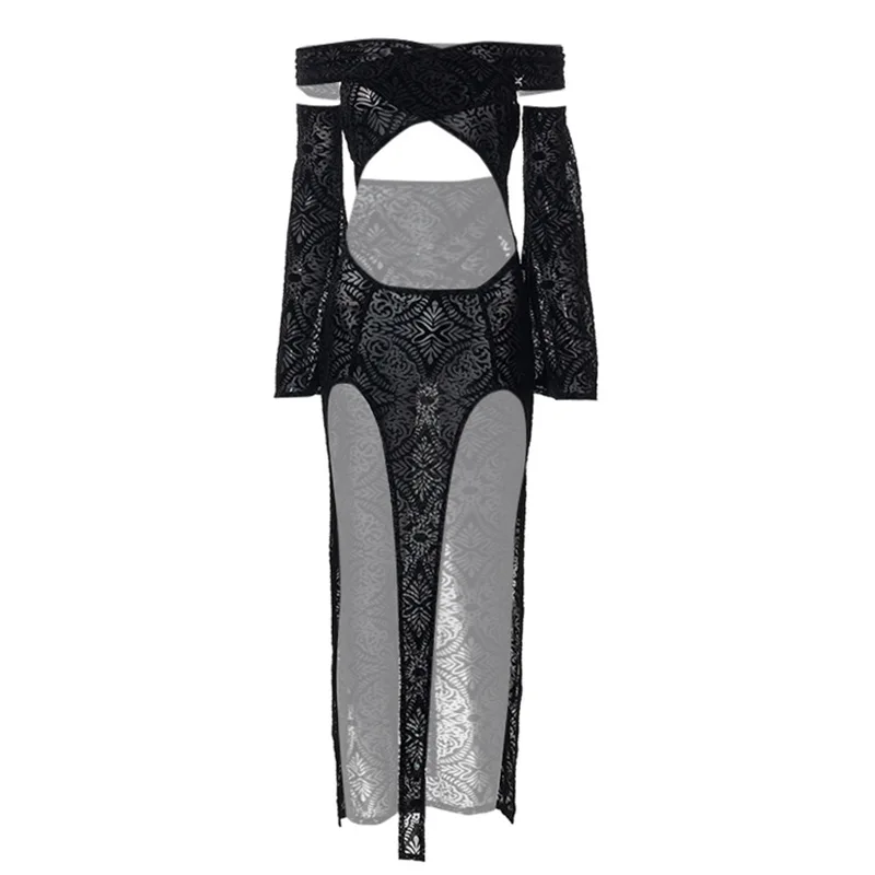 Dresses For Women 2022 Summer Sexy Black Transparent lace skinny Casual Long Sleeves Evening Party Prom Split Maxi Dress