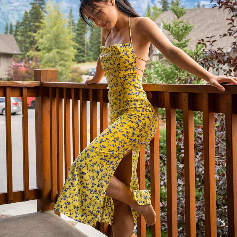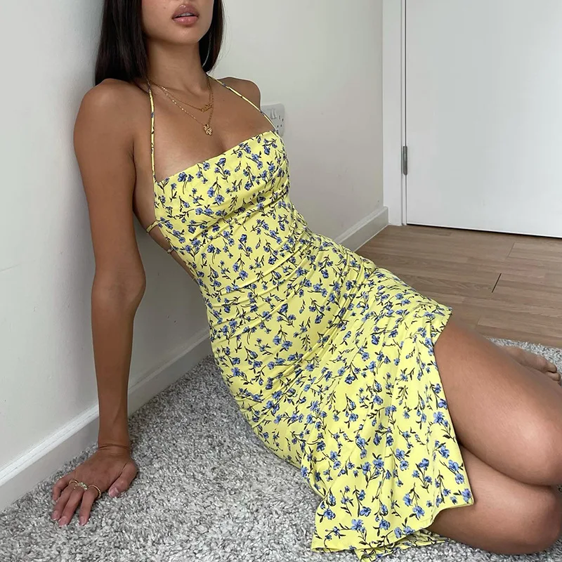 Dresses For Women 2022 Summer Skinny Sexy Pink Print Halter Casual Evening Party Prom Maxi Dress Vestidos Beach Streetwear