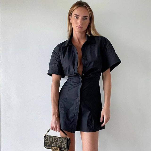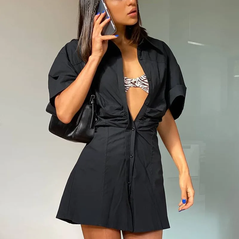 Dresses For Women 2022 Summer Skinny Sexy Single-Breasted Lapels Casual Club Party Shirt Mini Dress Vestidos Streetwear Clothes