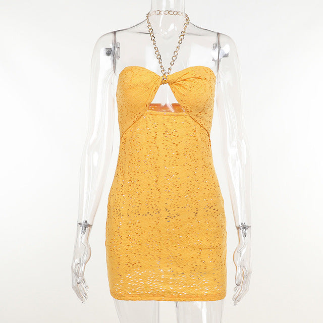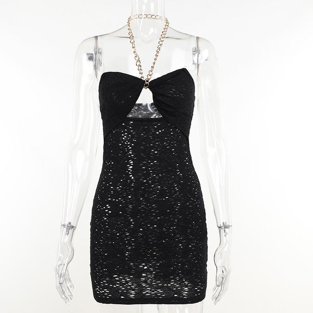 Elegant Sleeveless Sexy Chain Halter Tie Cut-Out Mini Dress Party Club Backless Fashion Summer Dresses Bodycon Outfits Vacation