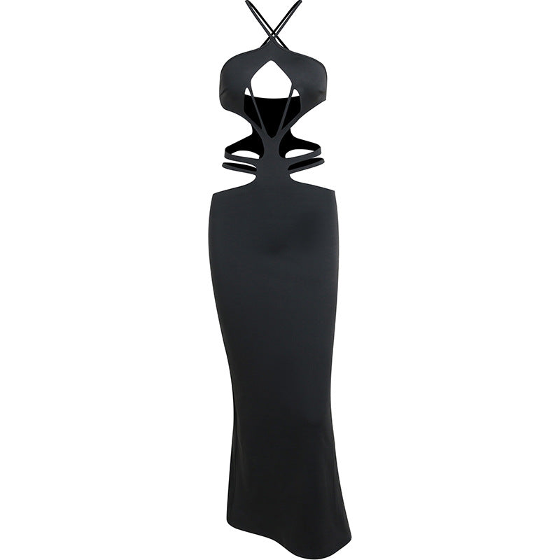 Elegant Sleeveless Sexy Halter Tie Cut-Out Maxi Dress Party Club Backless Fashion Summer Dresses Bodycon Outfits Vacation