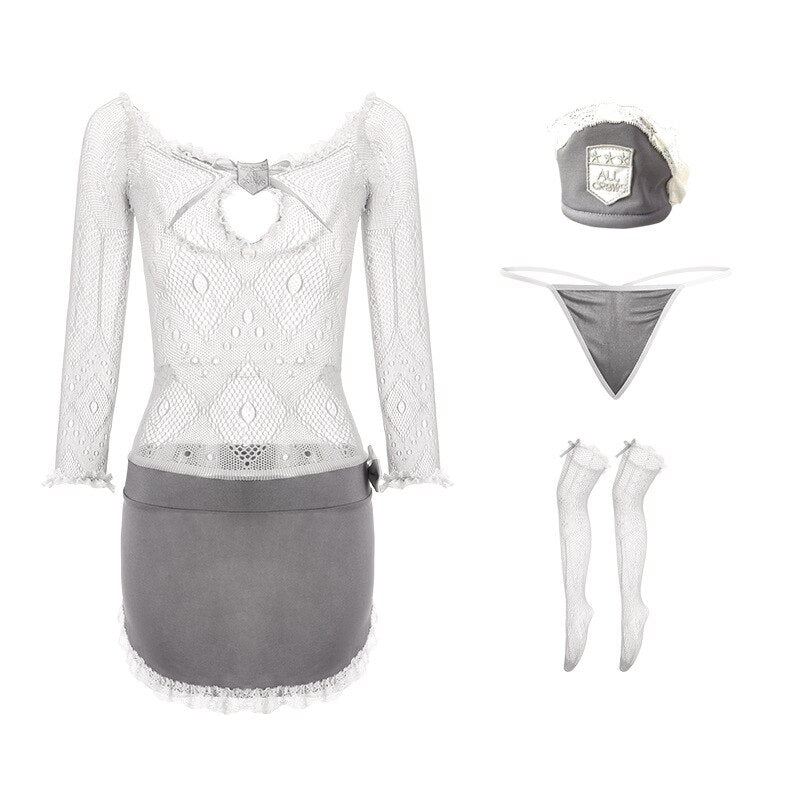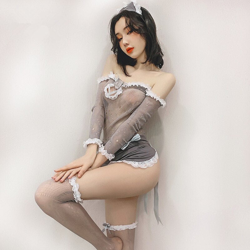 Erotic Lingerie See-through Sexy Slutty Fishnet Maid One-piece Stockings Sexy Nurse Kitten Lingerie Dresses for Sex Fantasy