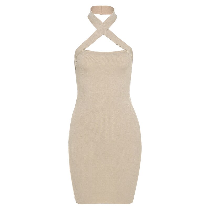Halterneck Cross Sexy Mini Dresses Women Sleeveless bodycon Party Backless Dress 2021 Summer Wrap Tight Robe Casual Streetwear