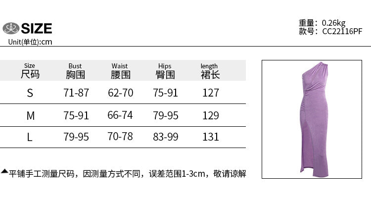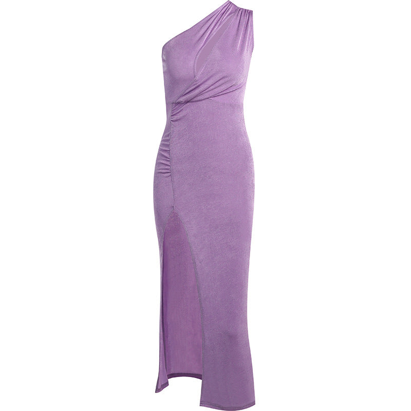 INS 2022 Summer Elegant Purple Inclined Shoulder Maxi Dress Sexy Slit Club Party Outfits for Women Sleeveless Prom Dresses Casua