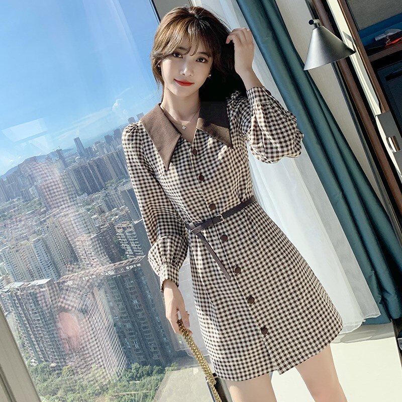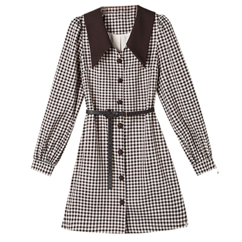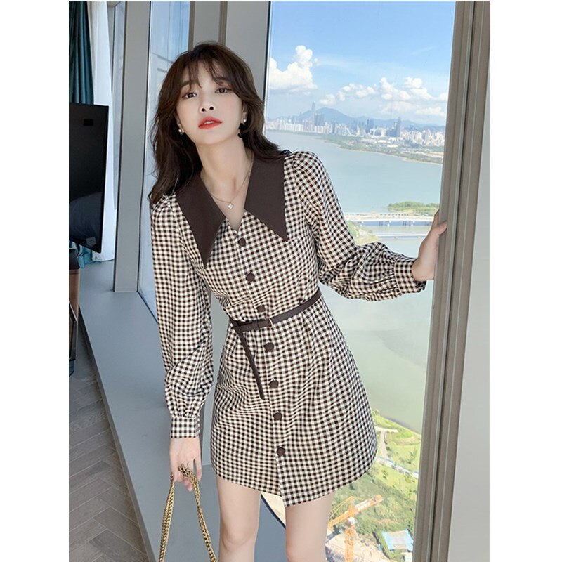 Long Sleeve Plaid Mini Dress Women Autumn Turndown Collar Single-breasted Korean Style Fashion Party Dresses Female Vestidos